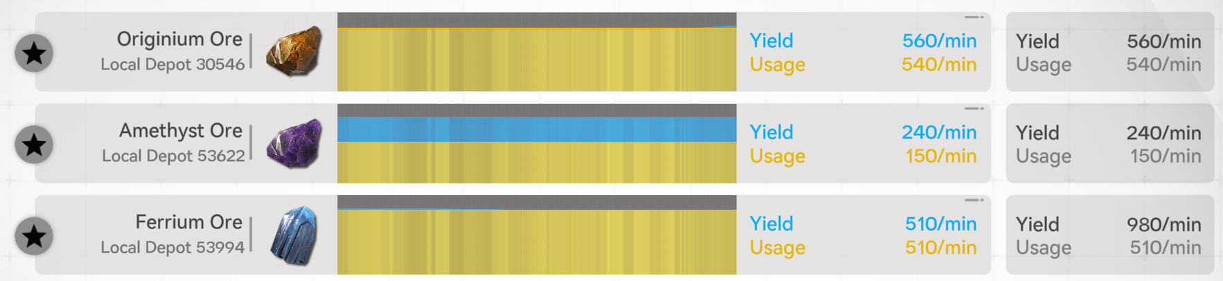 >12 blue batteris/min 6 purple battery per minute is taking up 300/450 of the ferrium/originium ores you get per minfuckonce you're past level 1 whats the most efficient item to make to sell to hubs?in fact which battery should i be using for thermal banks?