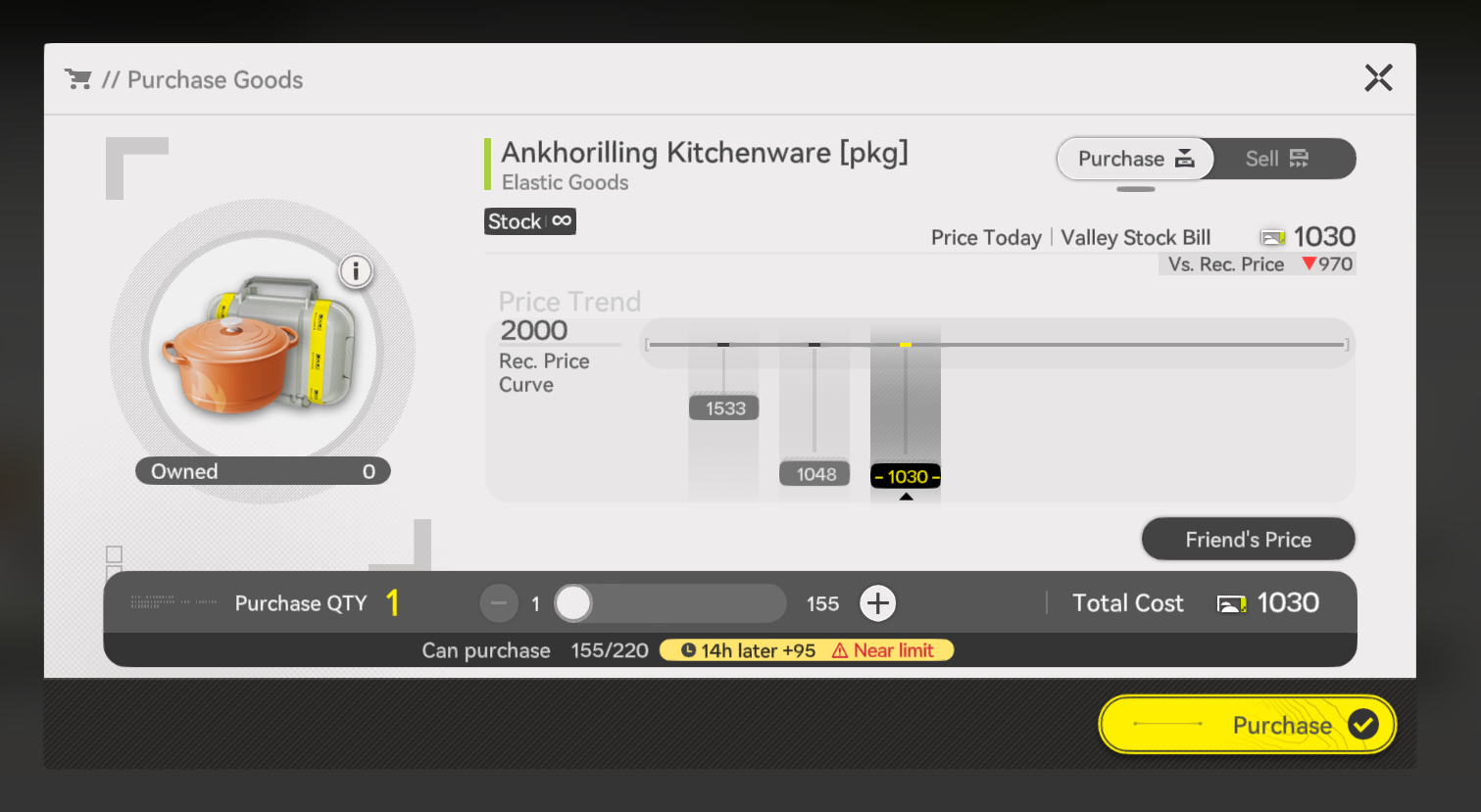 >>555145886I was going to call you retarded, but I have been going to every person on my friends list's Dijiang to check prices because I never saw the "Friend's Price" button, so I guess I'm even more retarded.