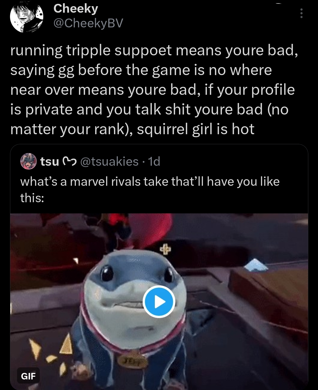 you were cooked. Quite frankly you're a support main so your opinion doesn't really matter that much, yeah you can complain about your team but if you really wanted to try and stop him or make the game easier you should learn how to play Magento, Emma, or the greatest Hawkeye counter Groot.