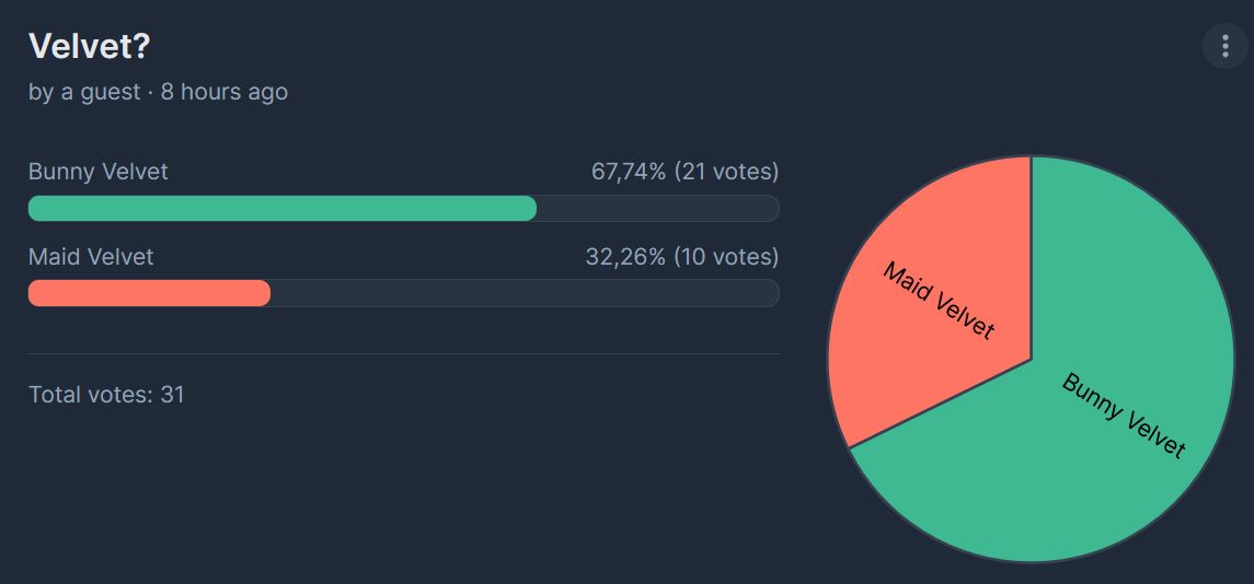 >>555185852Maid Velvet or Bunny Velvet?