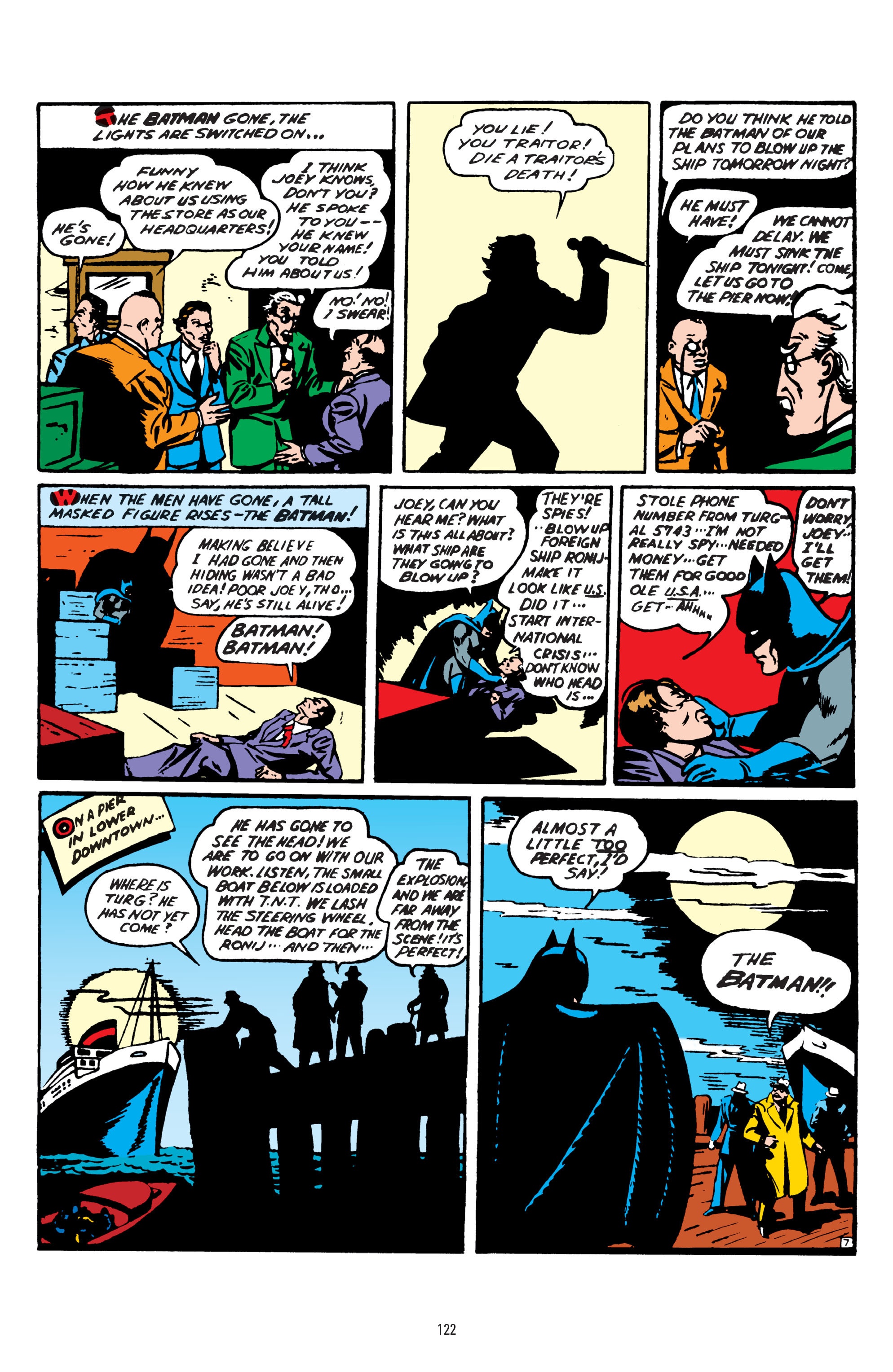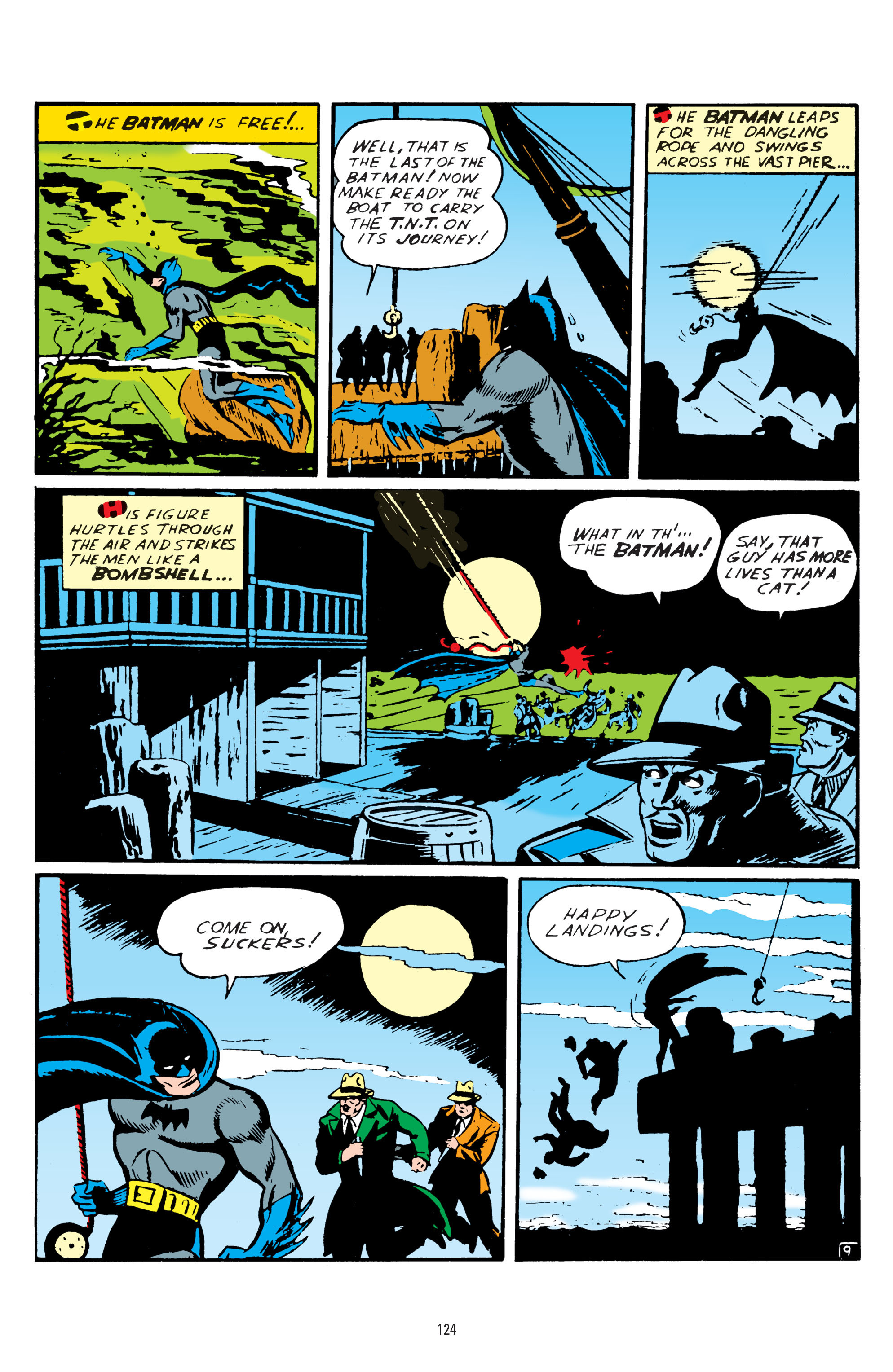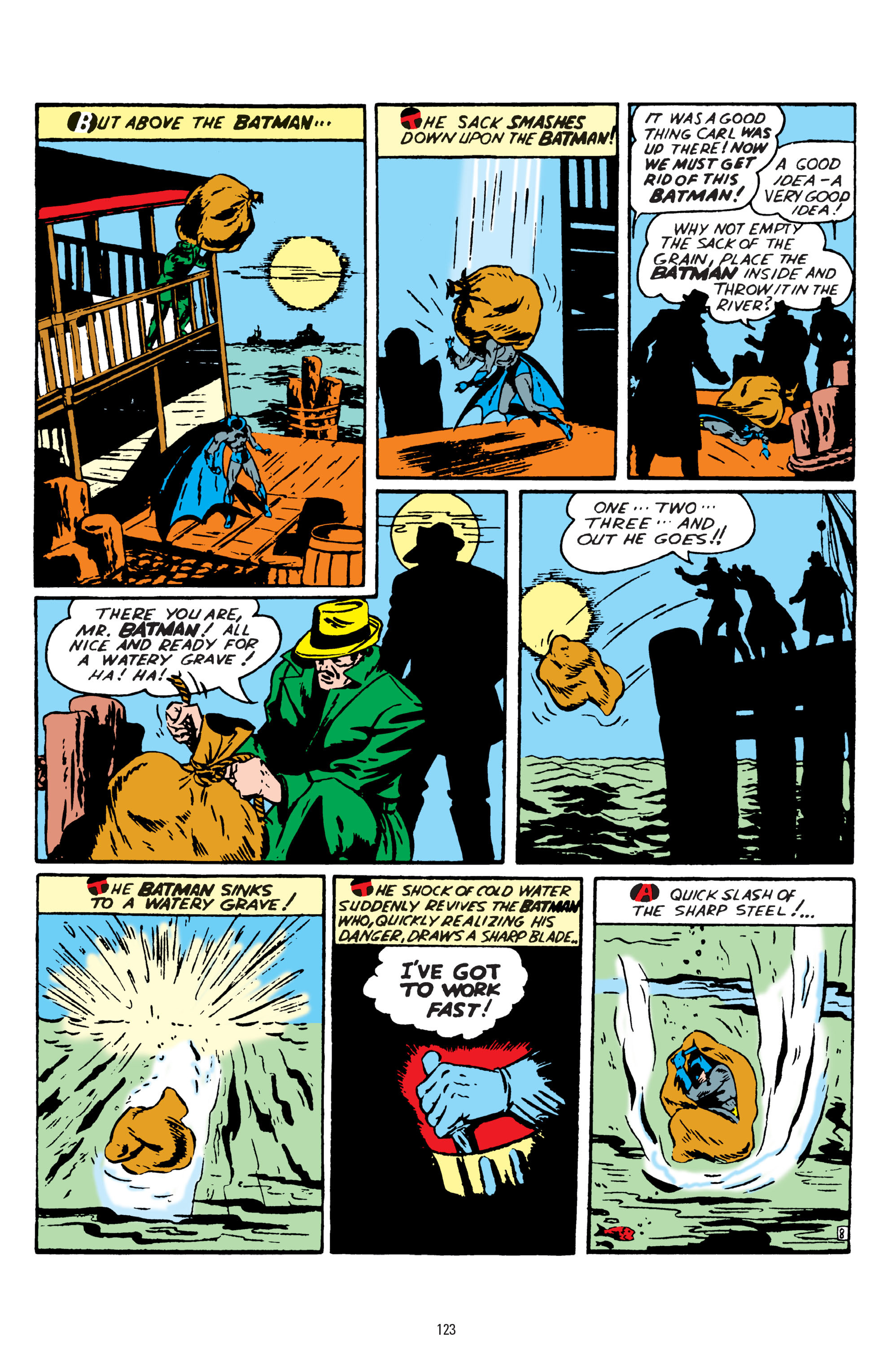 Now it's time for Batman to take out seven guys with his fists. BTW, if you knock a guy out and he falls into the ocean, chances are good he's gonna drown.
