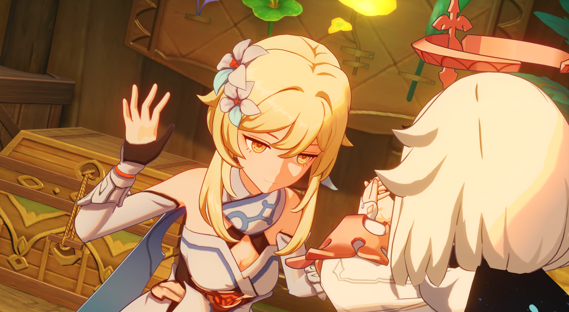 Aether has seen Lumine's pussy. She tugged her bikini bottoms outward for him. Wormttore will never get to see it
