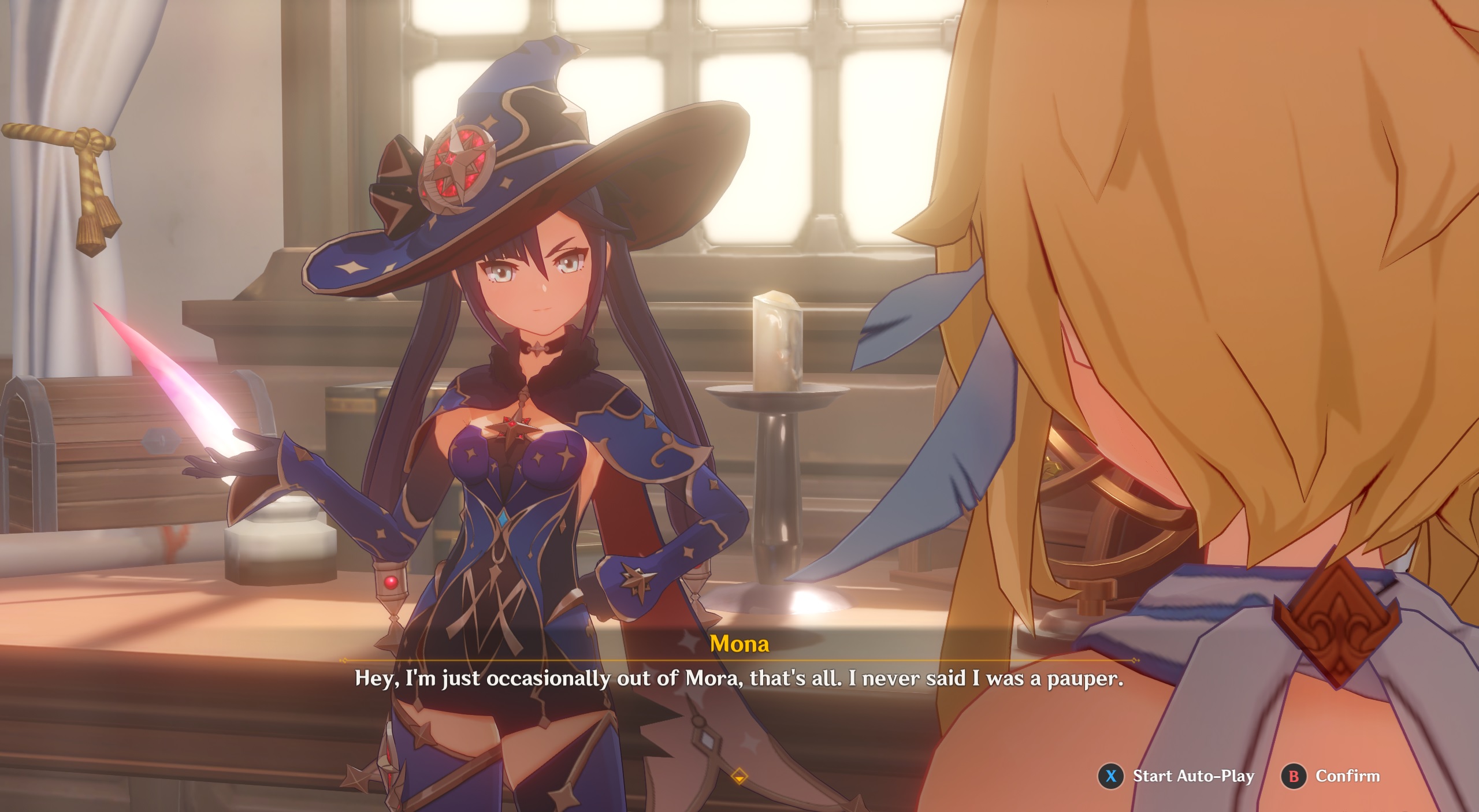 >>555175002Mona already gets a good paycheck from working on her Astrology column for Fontaine's newspapers, but always blows it right away on frivolous purchases like new gear and books she doesn't need