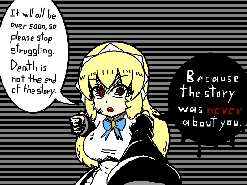 requesting a female character killing meim done and tired