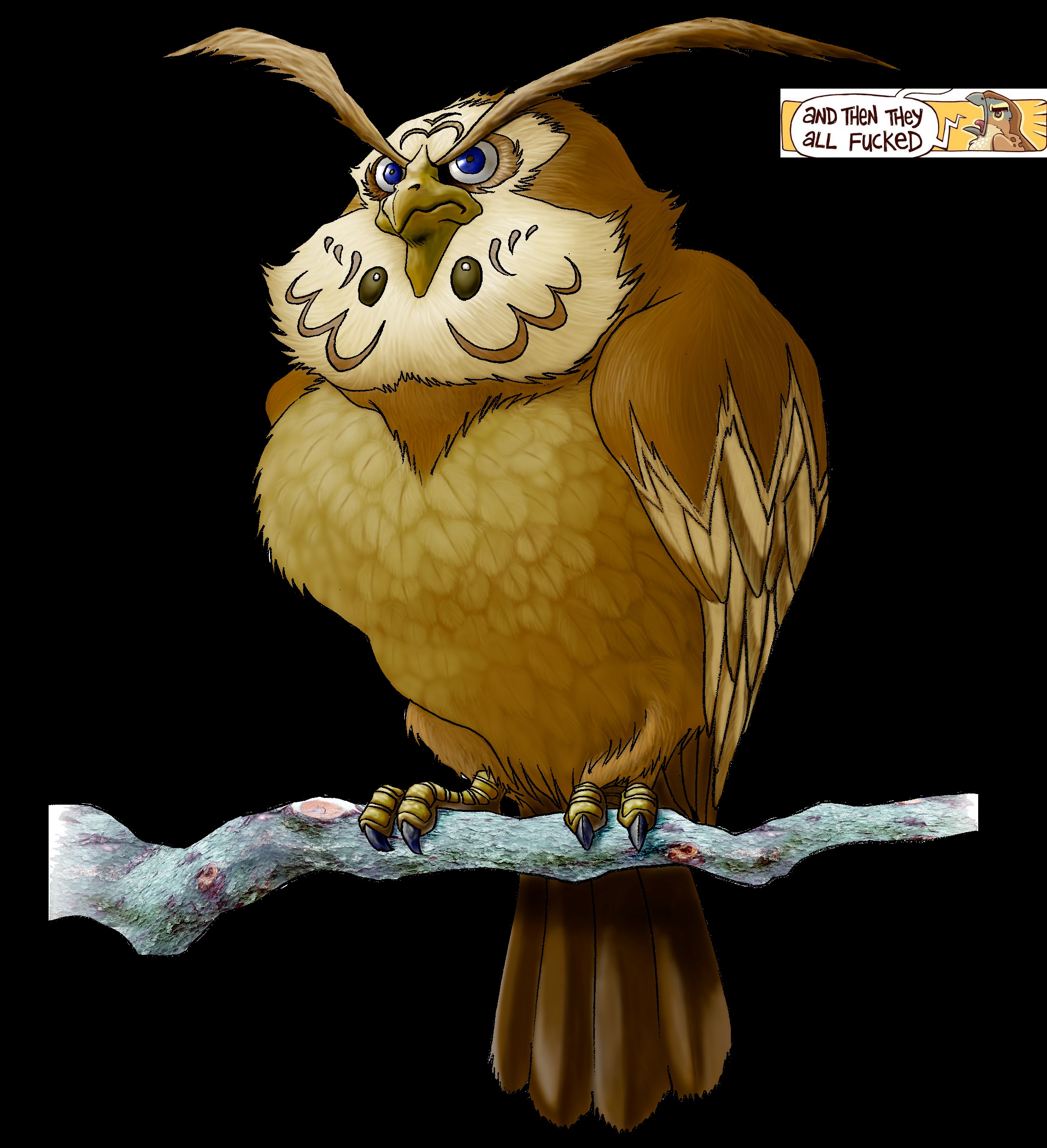 Kaepora Gaebora shouting the same line as the hawk, perhaps while startling Link and Zelda