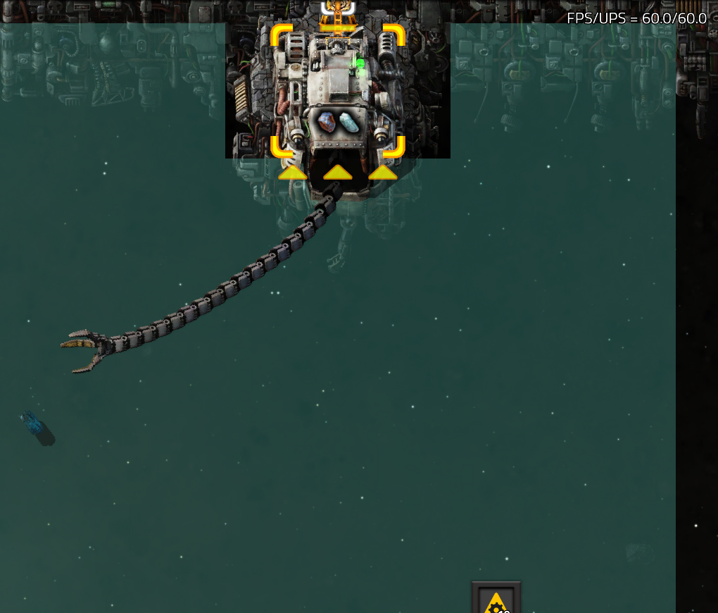 >>555177041>now collectors don't acknowledge previously blacklisted chunksas inyou blacklisted the chunk type for a short period of time, it got "marked", then you stopped blacklisting the chunk type, and now it won't pick it up?that's weird, butWHY are you blacklisting if you don't have plenty of chunks alreadythere's a solution to chunk filtering and belt managementwhich I'm 90% certain is better than whatever you're doing, and will let you update the game>sushi belt that runs around the ship>circuit connection on belt, read whole connnected belt contents>add this together with a constant combinator that has 1 signal of each asteroid type>feed this into a circuit which outputs anything that isn't above the limit>configure the limit to be 1/4 of the belt's capacity, 3 types means there's always space>this output signal then goes to all of the collectors, which pick up chunks that the system is low onAlso, if you're just making steel with a platform, and don't have asteroid reprocessing, then just collect only the metallic asteroids