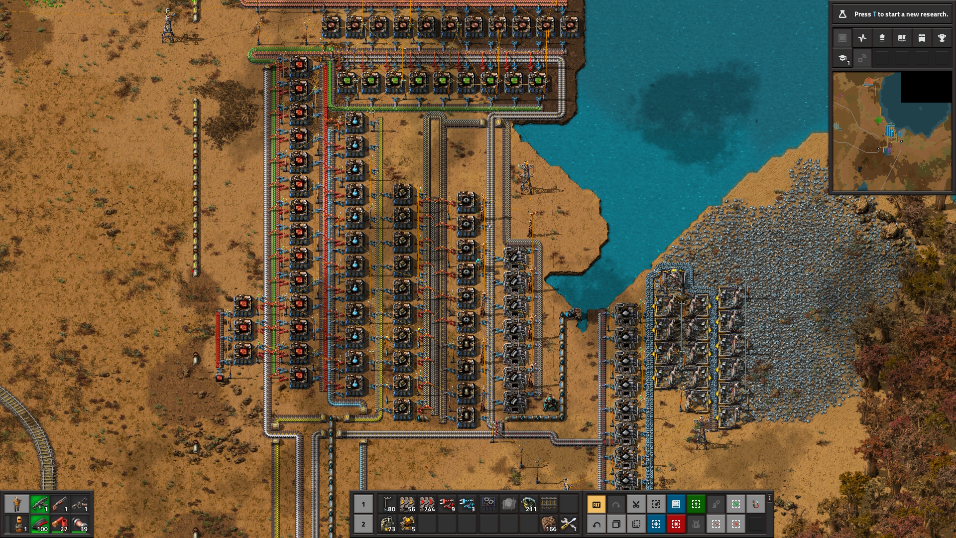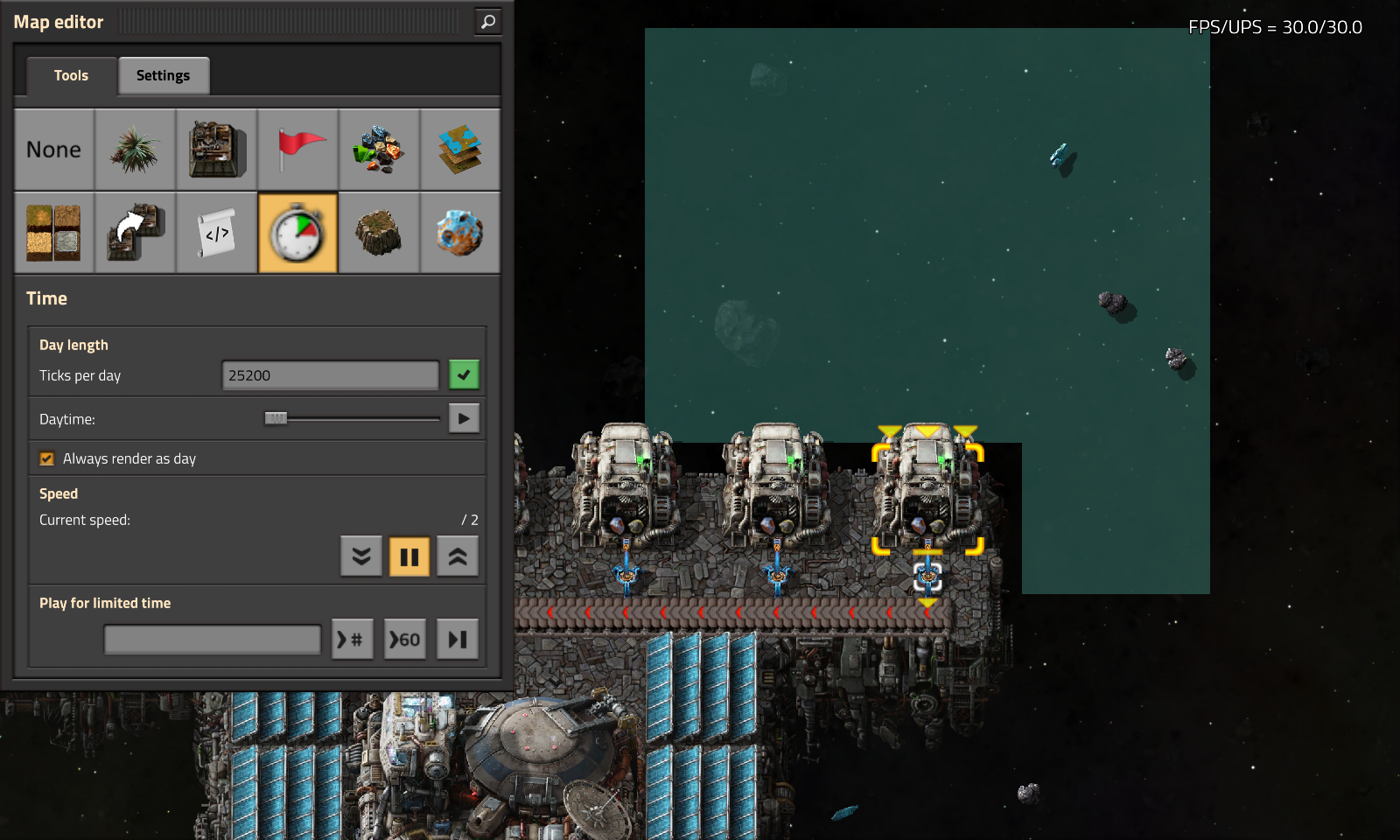 >>555236803If you only set the filters manually once or twice ever, what's the deal with waiting a couple of minutes when you do so? It's not going to be a regular operation.>Working with the engine is EXACTLY what I'm doing. I don't have a circuit network constantly changing filtersWorking with the engine in this case means not building a fuckoffhueg platform when you can do the same thing with a platform 10x smaller and a few thrusters. It is the opposite of what you're doing.Factorio is far from perfect (especially 2.0), but it's pretty good, and there's usually a way to reach a lot of massive goals if you do it right. People have built factories creating 250,000 raw SPM while staying at 60UPS - but to get that working you have to work with the engine, not in an abstract "I'm doing what I personally believe is correct" way, but in a concrete way of optimising for what the game is good at.Bashing your head against a design that is clearly straining the engine and yelling at the game will not help you with your goals.