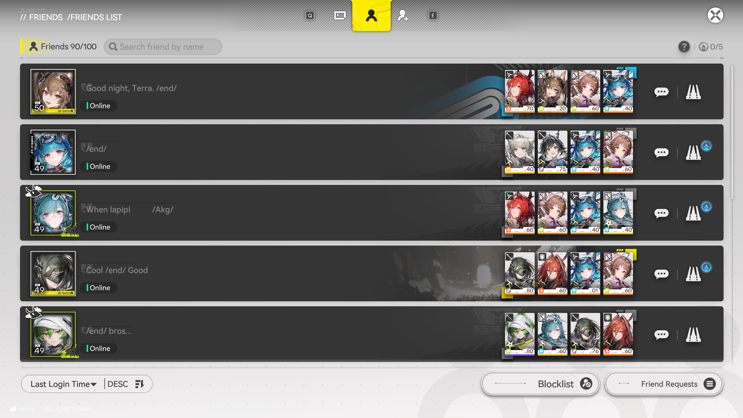 >>555195190my account looks a bit similar. same 6* characters (missing bunne) and different weapons.