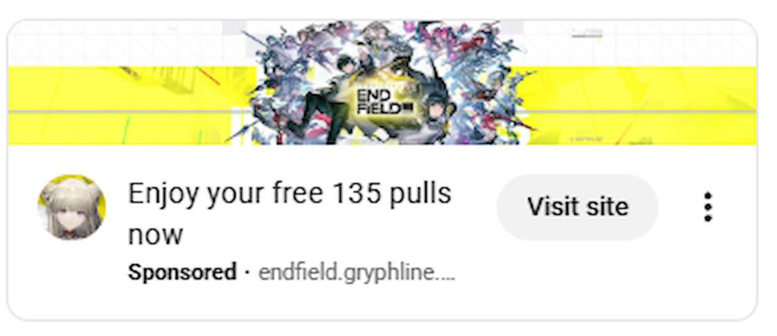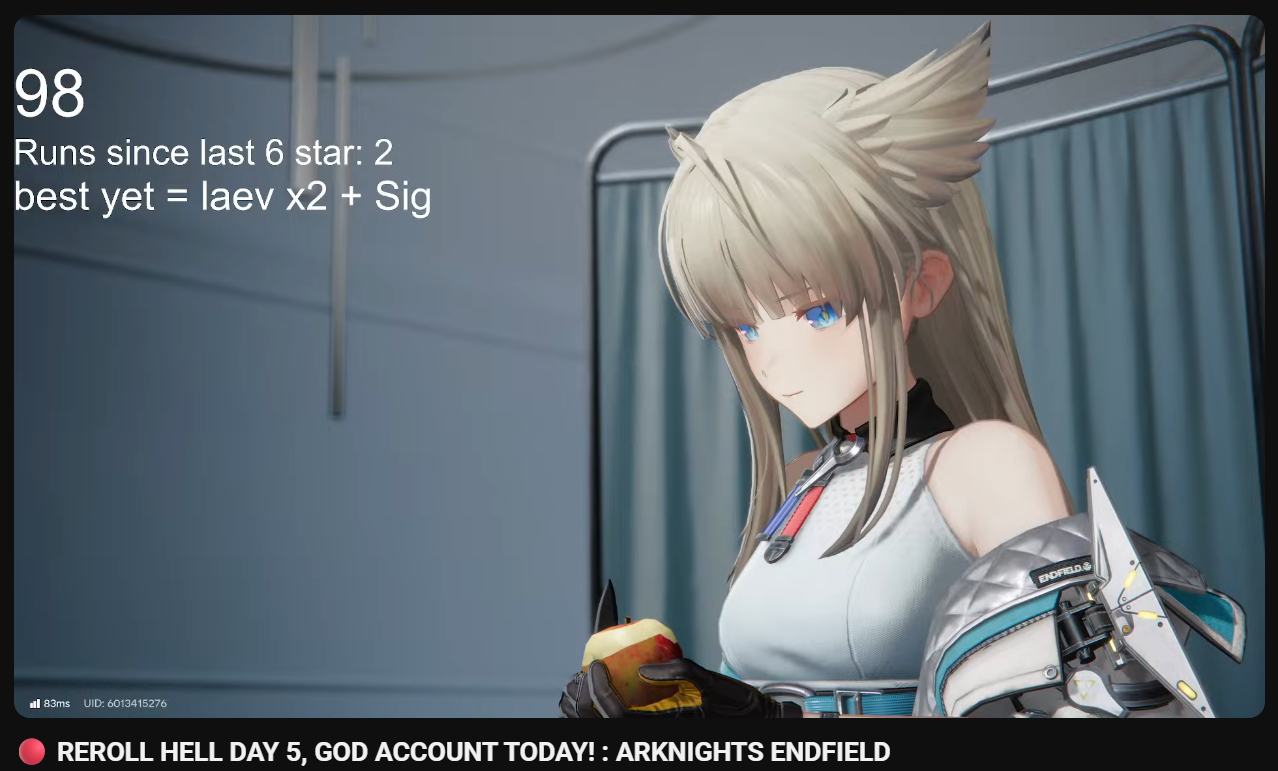 Previous thread: >>555174680>Official Websitehttps://endfield.gryphline.com/en-us>Official EN X (NEWS HERE)https://x.com/AKEndfield>Chartered Headhunting ScheduleJanuary 21st to February 7th --- "Scars of the Forge", (Laevatain)February 7th to February 24th --- "The Floaty Messenger", (Gilberta)February 24th to March 13th --- "Hues of Passion", (Yvonne)>Launch Reward Codes (Valid until January 29th)RETURNOFALLALLFIELDENDFIELDGIFTENDFIELD4PC>Twitch Dropshttps://endfield.gryphline.com/special/third-party-binding?channel=twitch>Voyage to the Stars (Ongoing until March 4th)https://endfield.gryphline.com/activity/voyage-to-the-stars/en-us/>Special Launch Streamhttps://www.youtube.com/watch?v=dz2g_D52NR0>Official Release Trailerhttps://www.youtube.com/watch?v=oJ00ggFb8A0>Official Release PV'shttps://www.youtube.com/watch?v=5Xm45NwWOlohttps://www.youtube.com/watch?v=UPpeeft1-8ohttps://www.youtube.com/watch?v=tN80M6IEMo0>Wikishttps://wiki.skport.com/endfield (Official)https://perlica.moehttps://warfarin.wiki/enhttps://endfield.wiki.gg/>Blueprint Guideshttps://talospioneers.com/en>Stickershttps://drive.google.com/drive/folders/13KH3L6QPIKkVH7pBddv4uxwmwJsnOtklhttps://drive.google.com/drive/folders/1OuVtjv1k-9c3M6n7d4PX3CGG5bkwH04ahttps://drive.google.com/drive/folders/1AStB8bzFk3lSwMwczWPkFYCBrZe0vHOghttps://drive.google.com/drive/folders/1yS0lqUhxf8tBRtpDFfCU1y16IS2sSeF7>Fr/end/sSubmit your /end/min:https://forms.gle/Fo7BhZMKaKqiWyL19View other /end/mins:https://docs.google.com/spreadsheets/d/1YtxiDss0hgEQhLlZgpfzyGrJrzUcqDzOS9T6IH-BiVc/edit?usp=sharing