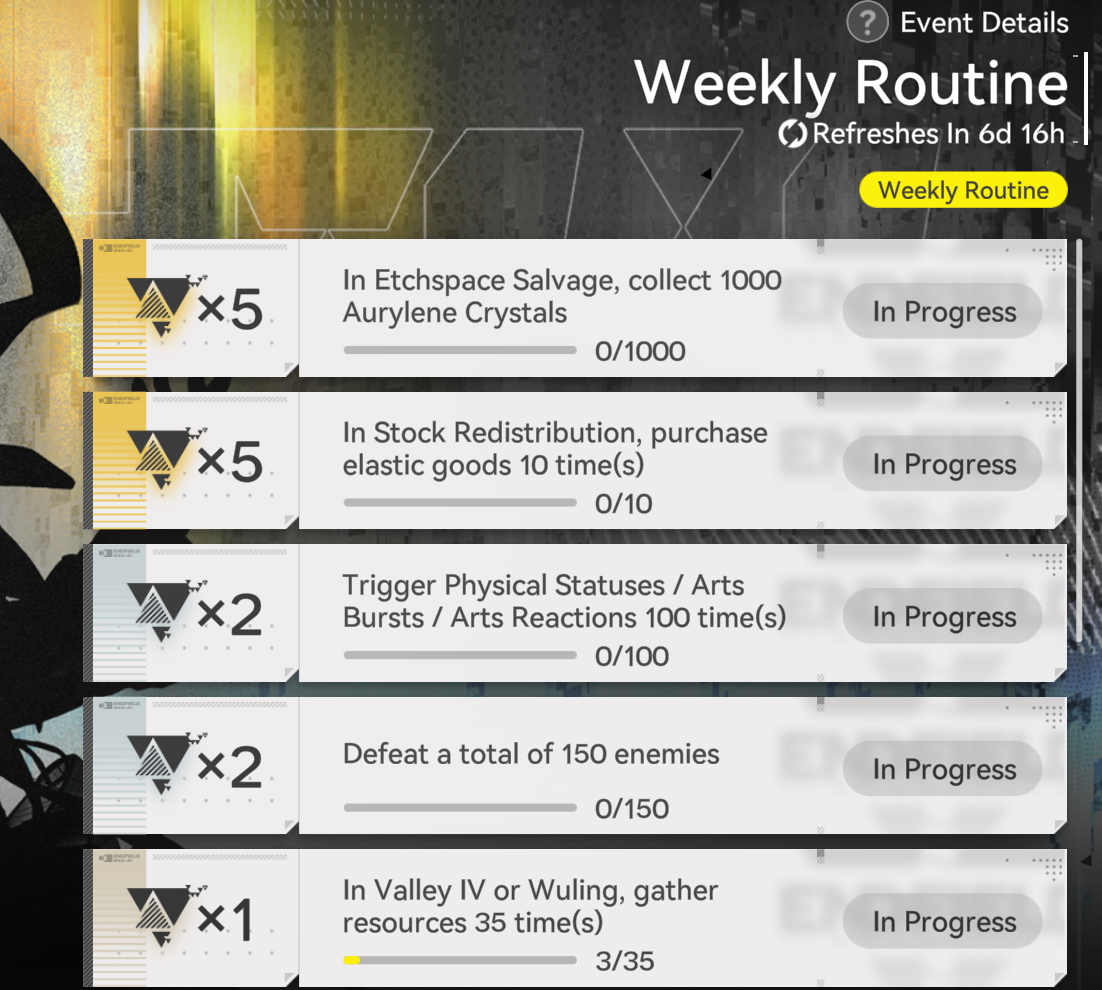 any weeklies in this game?