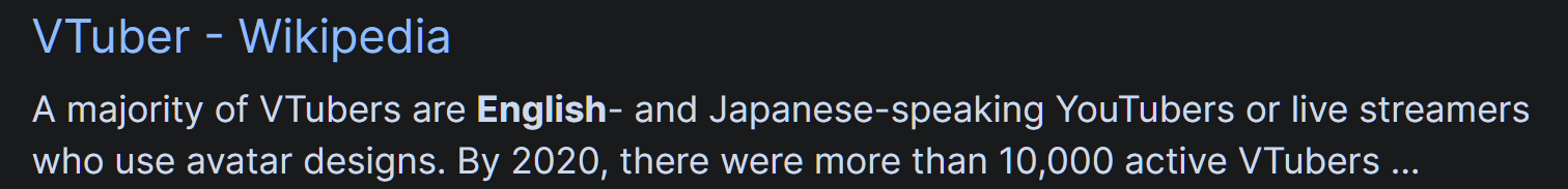 >>555203675>CN>VtubersYou have to doxx yourself to stream in China, and tens of millions on BiliBili is like hitting 10k views on any other side because of Chinese botnets. Phase Connect, Hololive are the biggest Vtubing companies on the planet and you can't meme that away by quoting BiliBIli stats. If the Chinese Vtubing scene was as big as you pretend it is they would be doing Live shows abroad too, but they don't. Because there isn't an audience for it. Even INDONESIAN vtubers do shows in America/Japan LMFAO