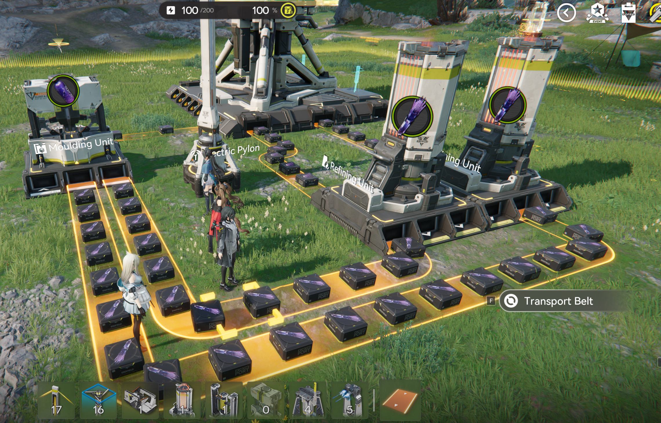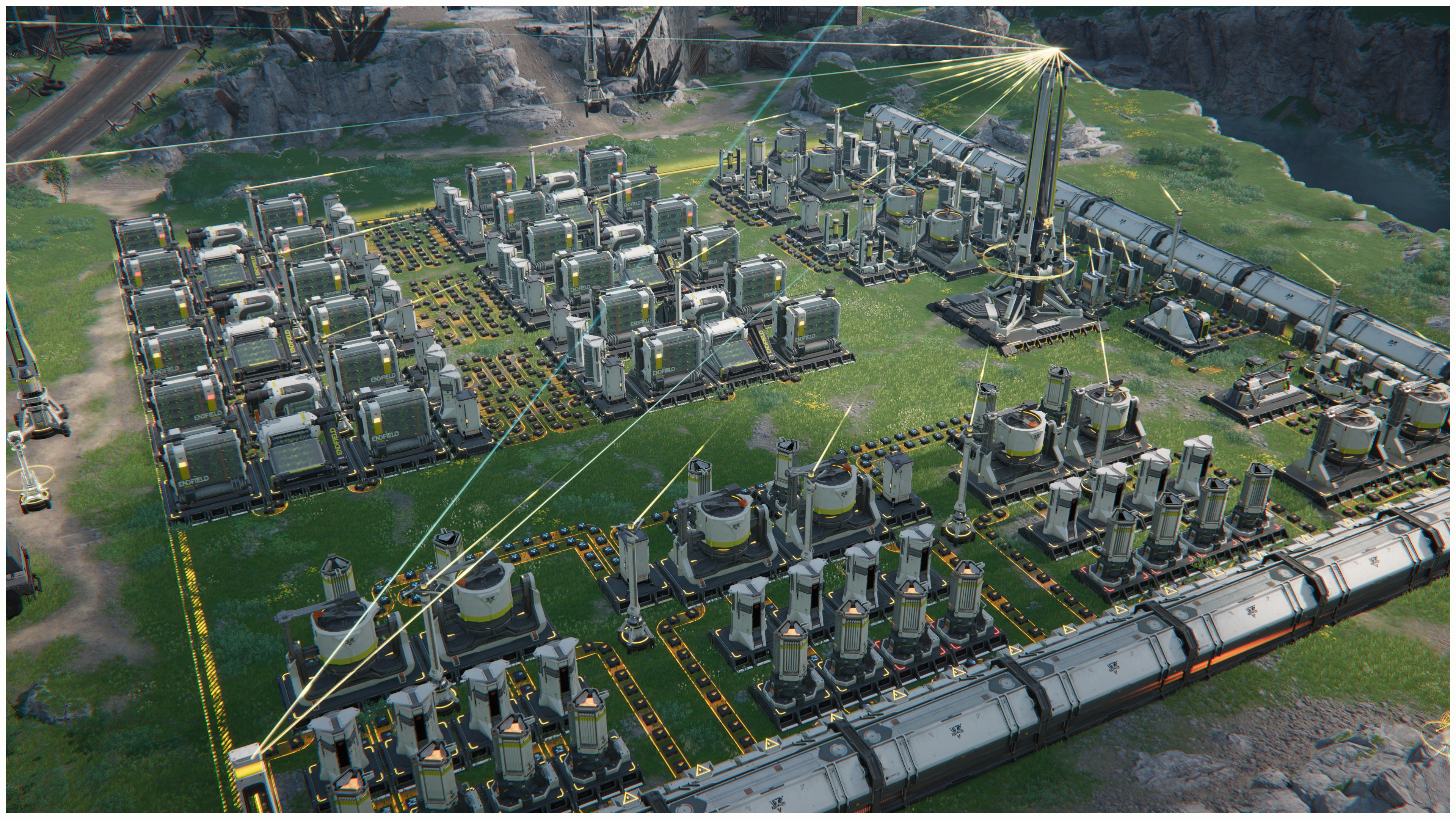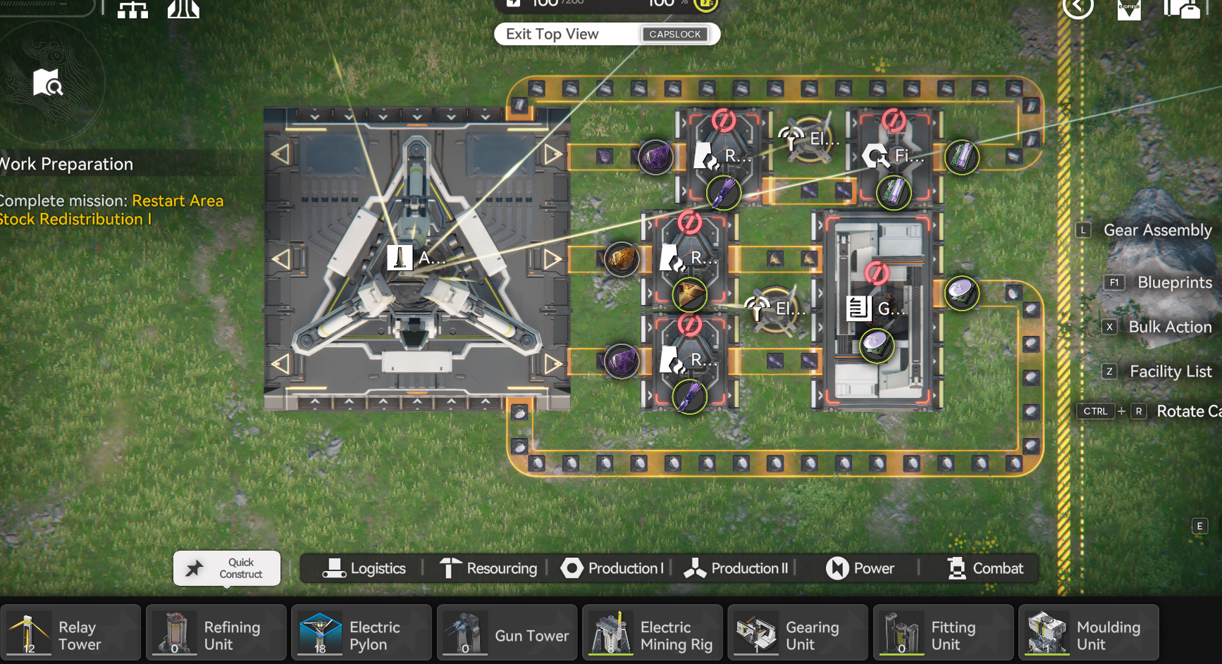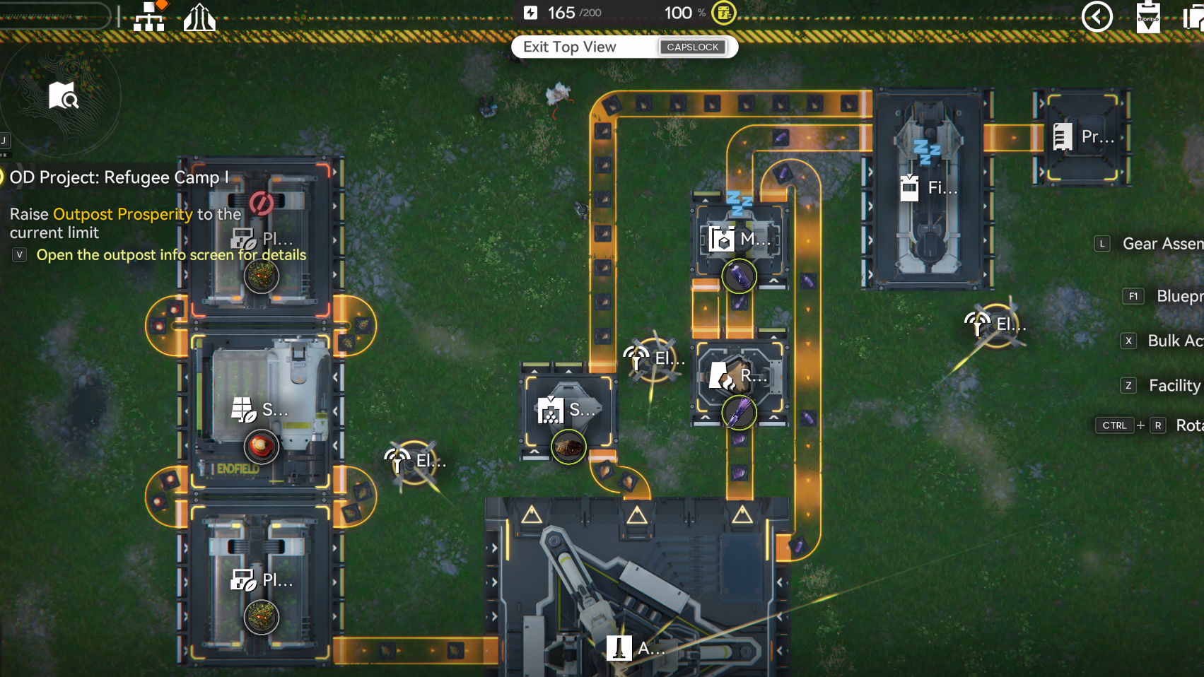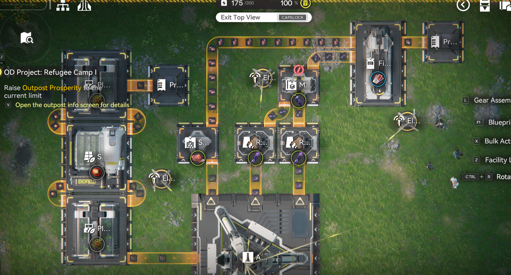 >one outpost which is nothing but fuel generators w/ purple batteries>one outpost that is for crafting gear>one outpost that is for making lower leveled parts>main base which makes all the high level componentsthis is the factory way