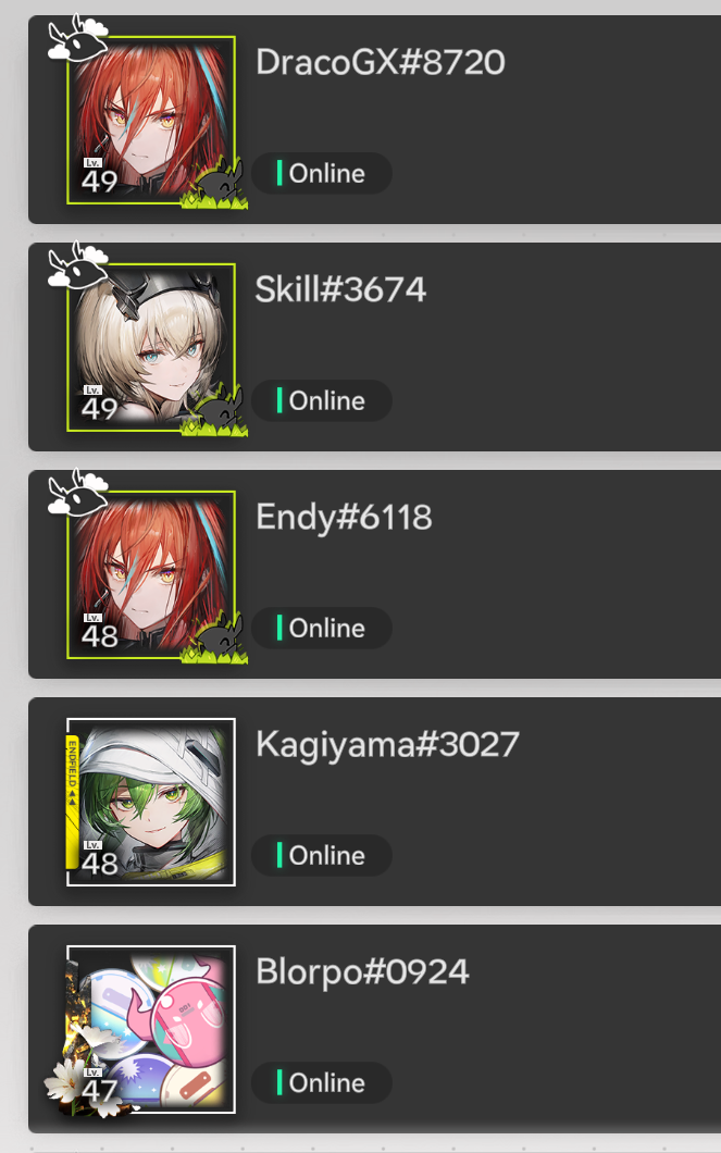 Previous thread: >>555196903>Official Websitehttps://endfield.gryphline.com/en-us>Official EN X (NEWS HERE)https://x.com/AKEndfield>Chartered Headhunting ScheduleJanuary 21st to February 7th --- "Scars of the Forge", (Laevatain)February 7th to February 24th --- "The Floaty Messenger", (Gilberta)February 24th to March 13th --- "Hues of Passion", (Yvonne)>Launch Reward Codes (Valid until January 29th)RETURNOFALLALLFIELDENDFIELDGIFTENDFIELD4PC>Twitch Dropshttps://endfield.gryphline.com/special/third-party-binding?channel=twitch>Voyage to the Stars (Ongoing until March 4th)https://endfield.gryphline.com/activity/voyage-to-the-stars/en-us/>Special Launch Streamhttps://www.youtube.com/watch?v=dz2g_D52NR0>Official Release Trailerhttps://www.youtube.com/watch?v=oJ00ggFb8A0>Official Release PV'shttps://www.youtube.com/watch?v=5Xm45NwWOlohttps://www.youtube.com/watch?v=UPpeeft1-8ohttps://www.youtube.com/watch?v=tN80M6IEMo0>Wikishttps://wiki.skport.com/endfield (Official)https://perlica.moehttps://warfarin.wiki/enhttps://endfield.wiki.gg/>Blueprint Guideshttps://talospioneers.com/en>Stickershttps://drive.google.com/drive/folders/13KH3L6QPIKkVH7pBddv4uxwmwJsnOtklhttps://drive.google.com/drive/folders/1OuVtjv1k-9c3M6n7d4PX3CGG5bkwH04ahttps://drive.google.com/drive/folders/1AStB8bzFk3lSwMwczWPkFYCBrZe0vHOghttps://drive.google.com/drive/folders/1yS0lqUhxf8tBRtpDFfCU1y16IS2sSeF7>Fr/end/sSubmit your /end/min:https://forms.gle/Fo7BhZMKaKqiWyL19View other /end/mins:https://docs.google.com/spreadsheets/d/1YtxiDss0hgEQhLlZgpfzyGrJrzUcqDzOS9T6IH-BiVc/edit?usp=sharing