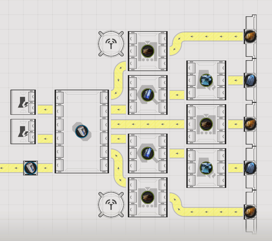 >>555207161What I've started doing is something that is probably going to be a fucking nightmare for me in the future, and it's splitting the production line between bases. It technically costs me more output slots, but it feels so much cleaner overall.