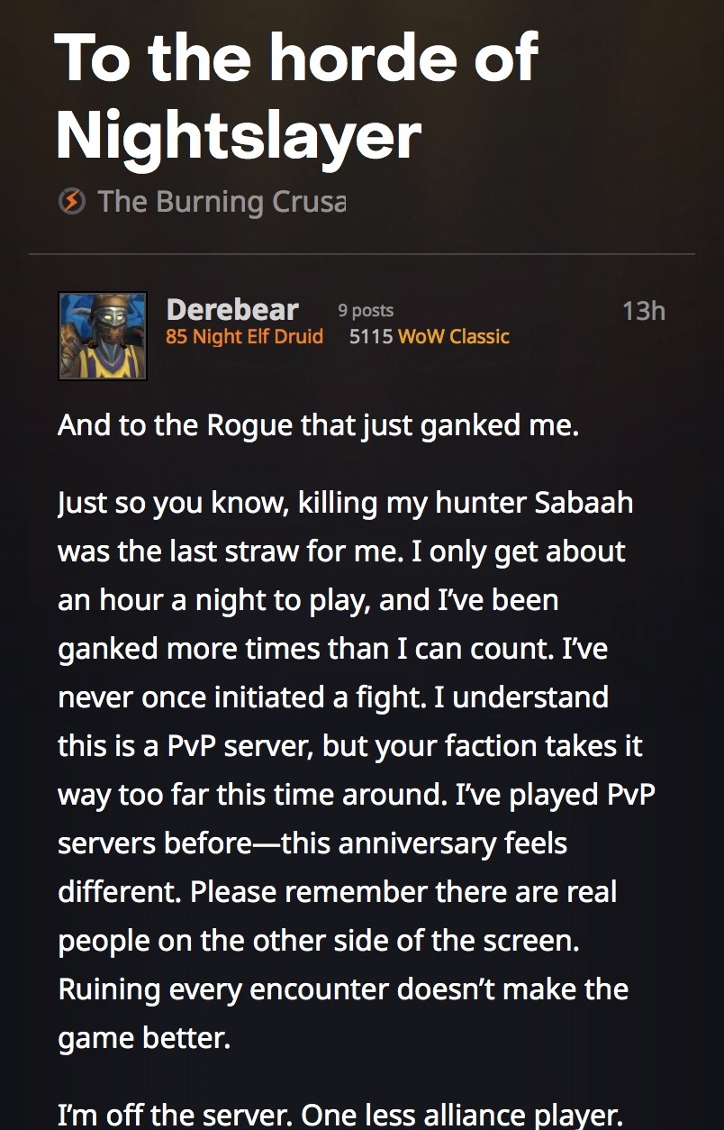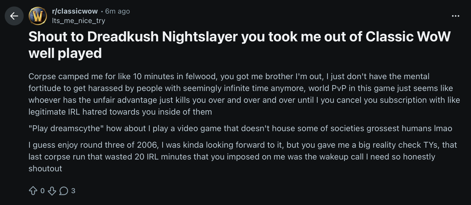 I'm playing WoW for the first time and picked a warrior. Feels good to know the frustrations I have has been shared by players 15 years apart.