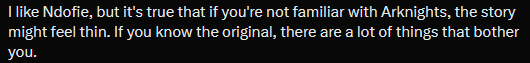 >>555242020>How they thought the opening section was okay story wise or tutorial wise is bafflingEndfield's intro and story suffer from at its core being insecure on the premise. They're worried the factory will hurt mass appeal but refuse to remove it, so they walk you through every step. They're worried the hoyo audience don't like AK storytelling, so they dumb everything down as much as possible.