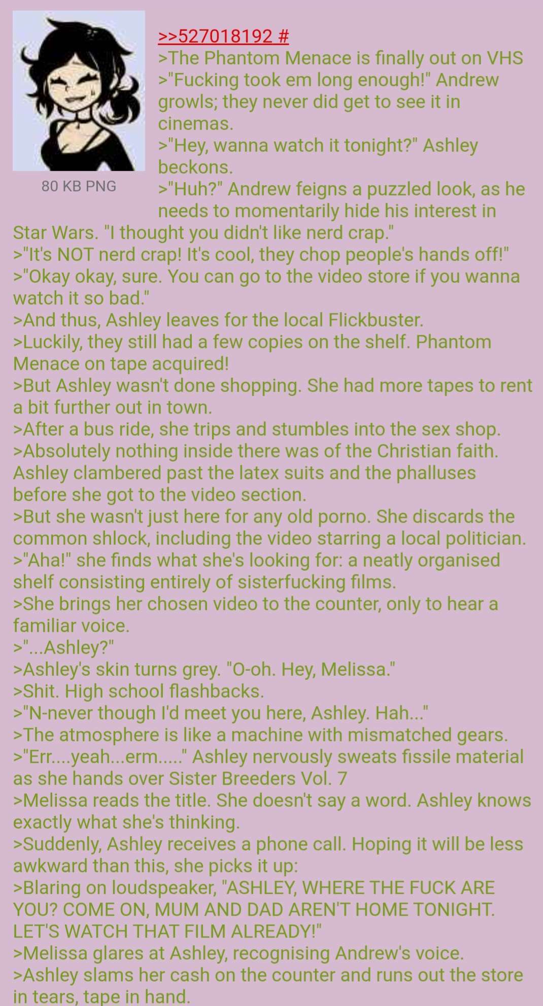 >>555269446Man I'm so jealous of you. Sisterless faggots like me have no joy and can only find it in fantasy land. I desperately want a bpdemon like Ashley!>>555269348Storytime