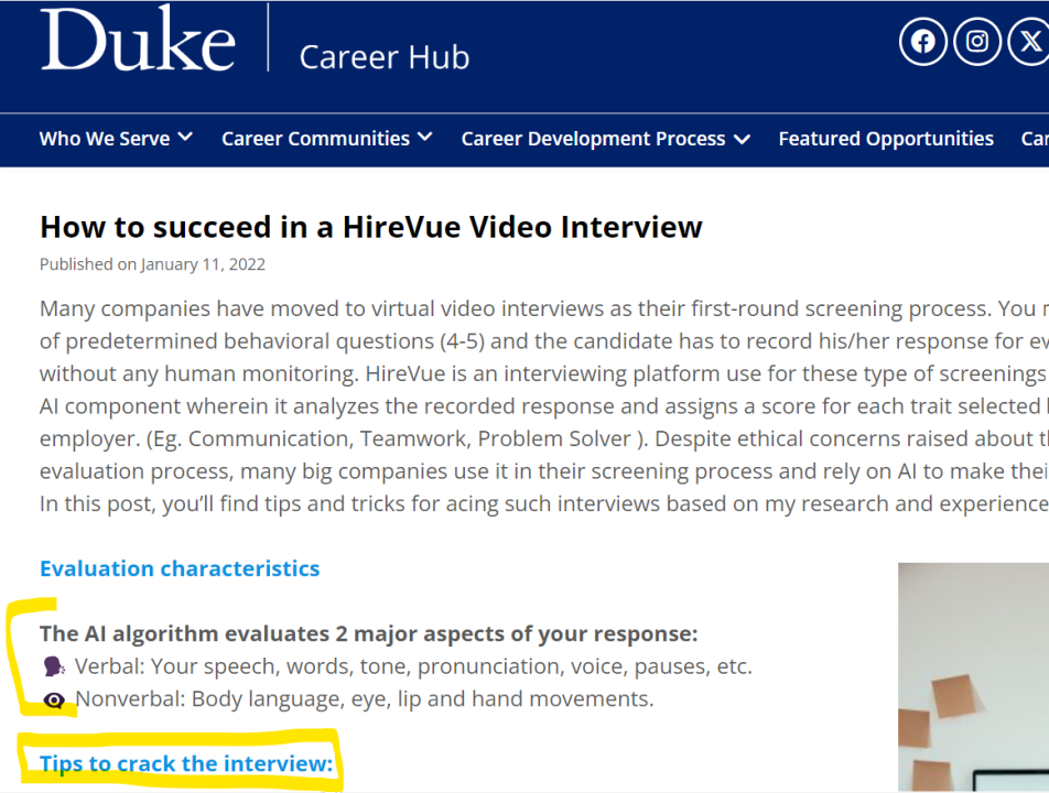 >>555595827>>555596359What's more, if the black box (AI) deems your resume acceptable, you may be invited to sit a personality/IQ test. And have your speech, pronunciation, body language and eye movements assessed by the black box. Praise be!