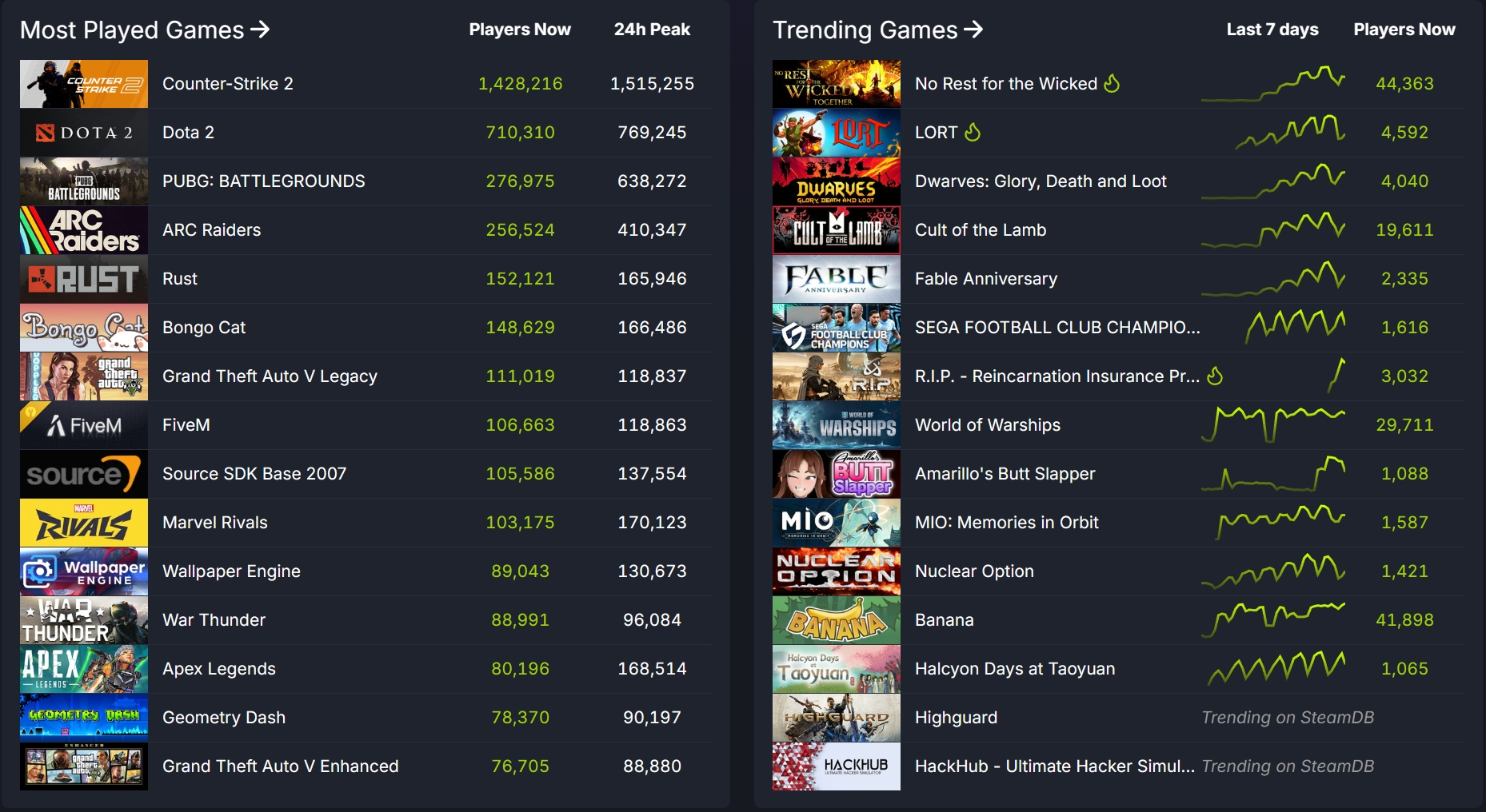 >>555270028holy fuck it's really already peaked.look at what else is trending on steamdb by the way LOL!