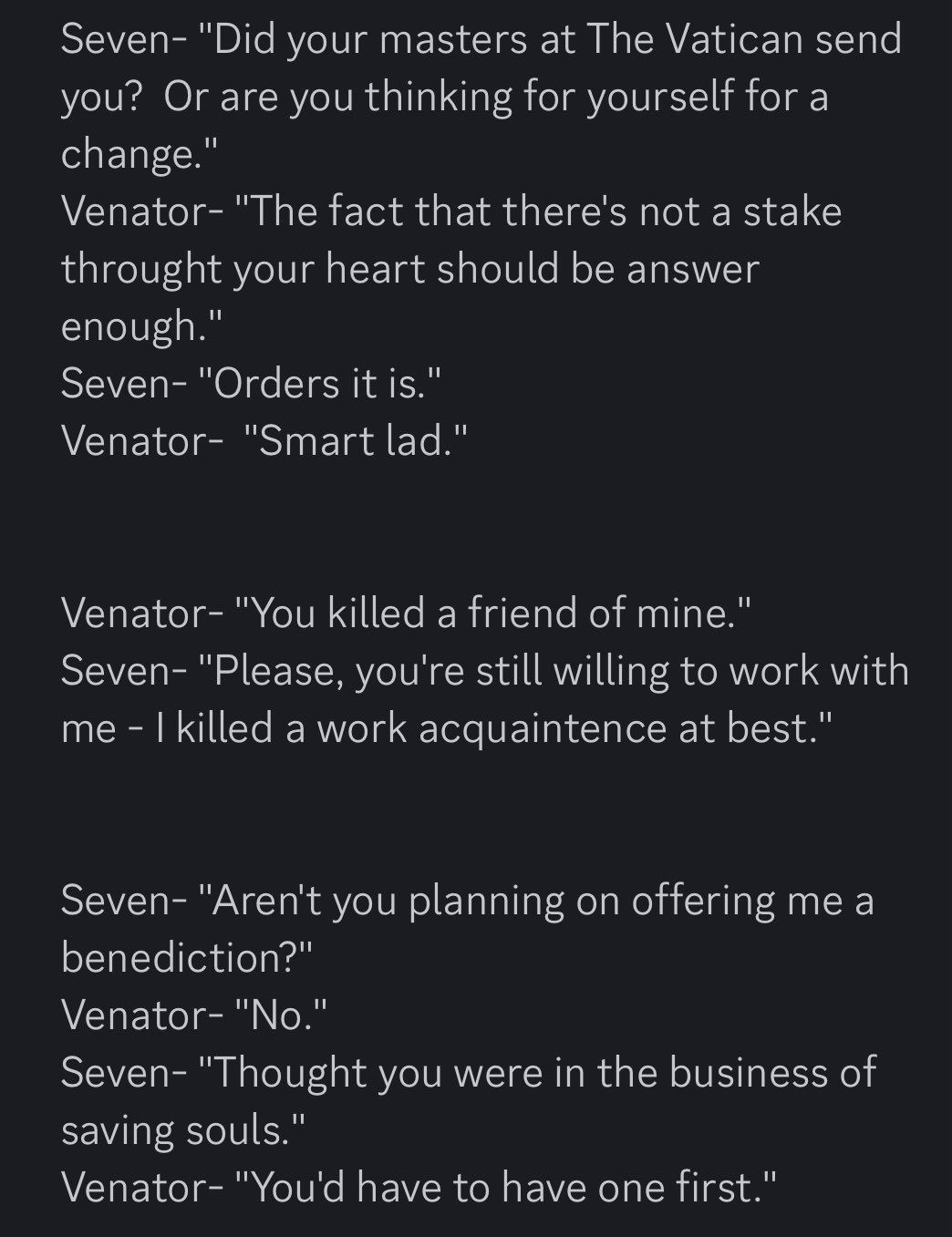 >>555267534Im liking Venator's characterization so far>>555267698God willing we are eating good