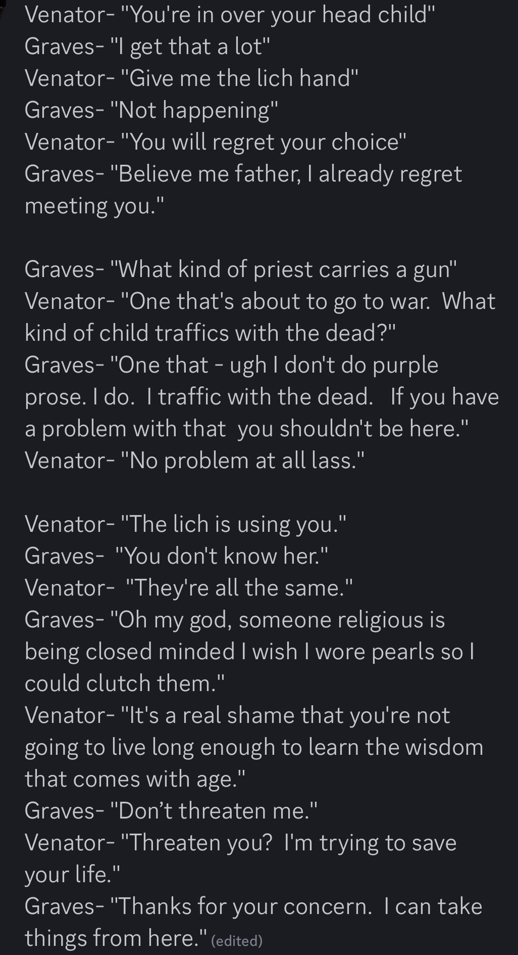 >>555269316>the teenage necromancer groomed by a lich doesnt like the priestI-IS THAT WAKING UP EARLY AND GOING TO CHURCH ON SUNDAY???? AIIIEEEEEEE IM REPENTING SAVE ME LICHMAN-SAMA