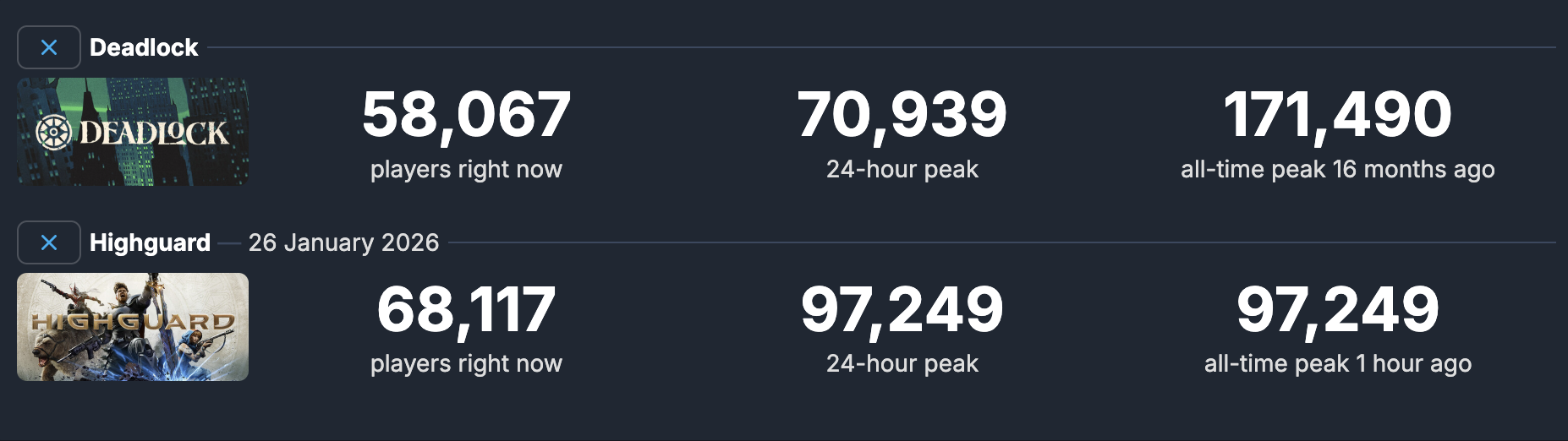 >>555270028I mean, Deadlock had 100k+ when it "launched" (publicity restrictions lifted) so that seems bad for highguard