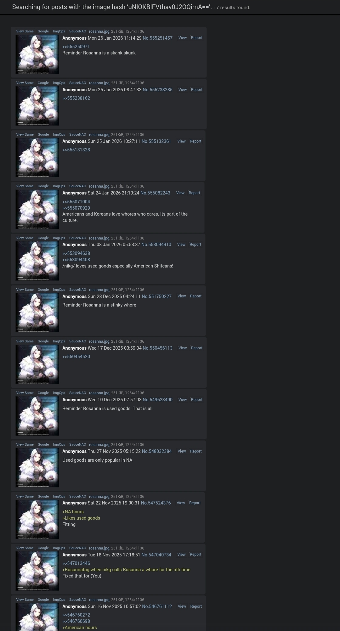 Reminder Rosanna is a skank skunk