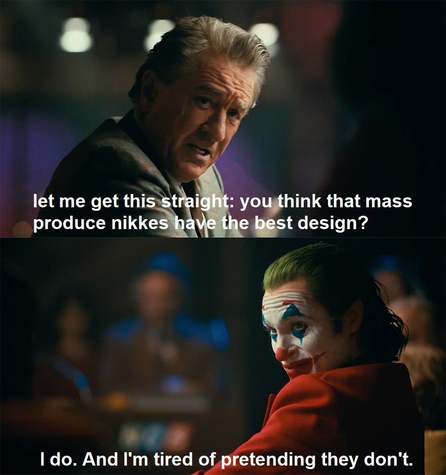 I started playing the game for the jiggly asses, the story actually hooked me up but I'd say its quality has lowered recently so I'm not that into it anymore. I'm still annoyed by 2.5 anni. I liked pushing HM under high deficit because I could compete with a shard rival, but his whale powers have finally surpassed me and I don't think SU deserves my money. Now I just casually enjoy climbing manufacturer towers and pushing on hard mode while I watch my Nikkes jiggle.