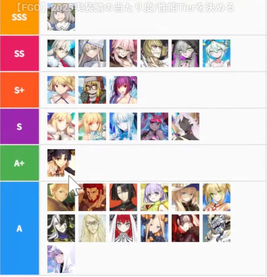 >>555277534Ryo servants should be sss. Also Abby should be in f tier.