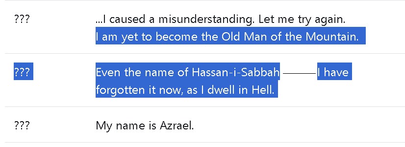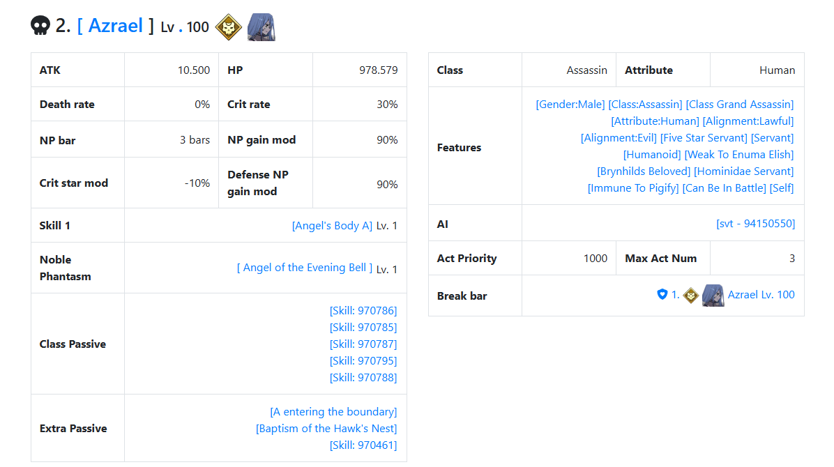 >>555386440The words in his NP>A system, vast and formless, it oversees death itself!>Engrave it upon your soul!This sounds exactly something that fits with Azrael being a CE. I am sure you're smart enough to figure out why by the first line and Azrael being the angel of death.