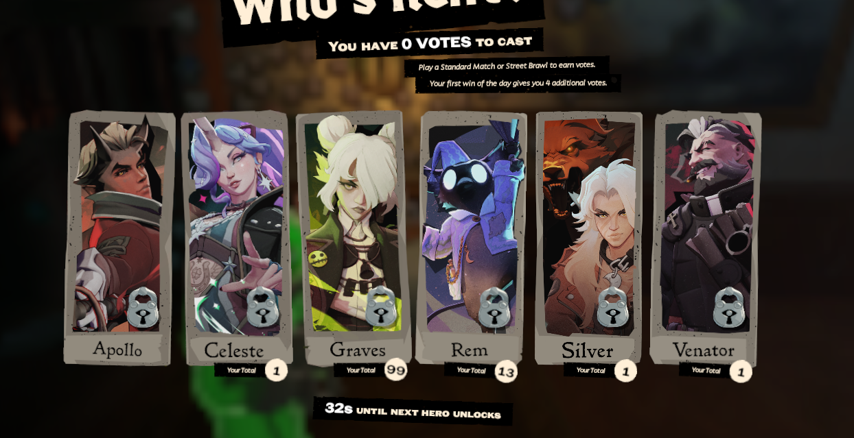 Rem & Silver this week.Graves & Venator next week*Celeste & Apollo after that**unless the waifufags collectively pivot to Celeste after Graves is in.