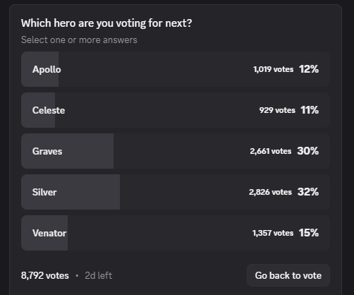 >apollo has the most interesting lore and kit out of the 6 unreleased characters>will most likely be last or at best second to lastthis is why voting doesnt work