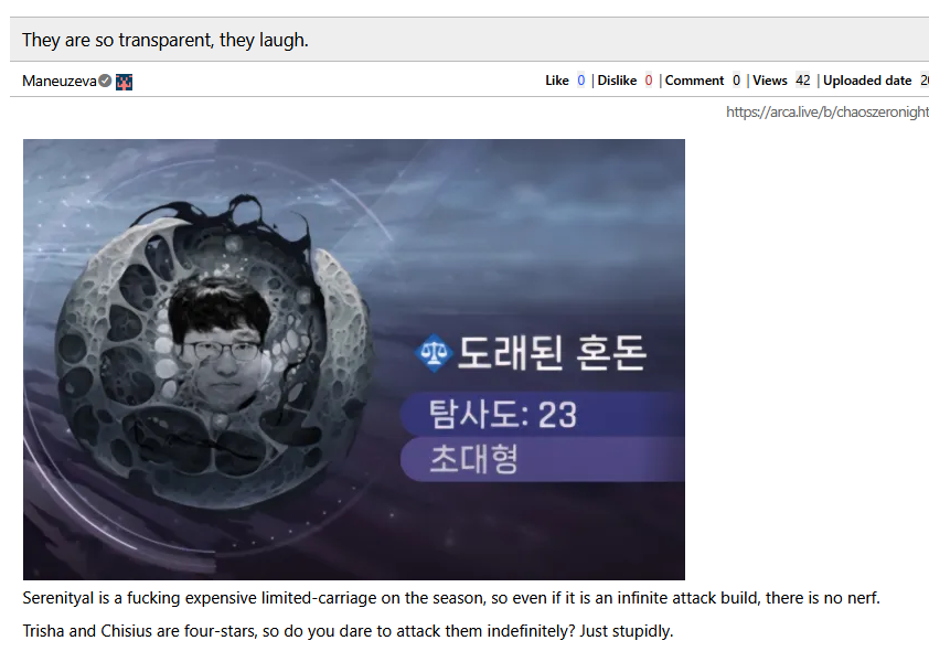 >>555409314you might want to go to reddit brothis place is the only free english discussion for this gameother places are more positive because negativity is forbidden