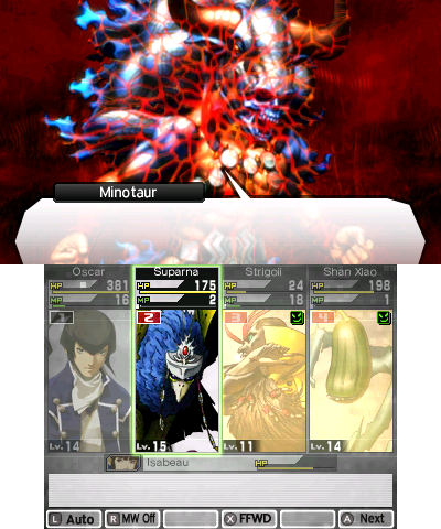 Huh Minotaur felt easier.I beat 4 twice on normal and got filtered by him.This is reincarnation so the only demon I could bring was a buff/debuff focused Metatron in case as I was gonna play expert for the first time.One thing I had as an advantage was a DLC armor that gave me physical resist.But even so my demons didnt die to Labrys strike or Oni Kagura.