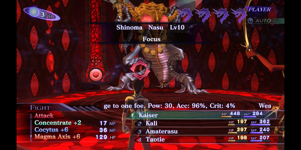 round 3 on hardtype fly cunt.certain sequences can just fuck a demon from full hp if they have less than 600. amaterasu is the mvp for insta killing the adds. I'm overleveled at 79, probably could've done it sooner if I had properly prepared. now for metatron rng.
