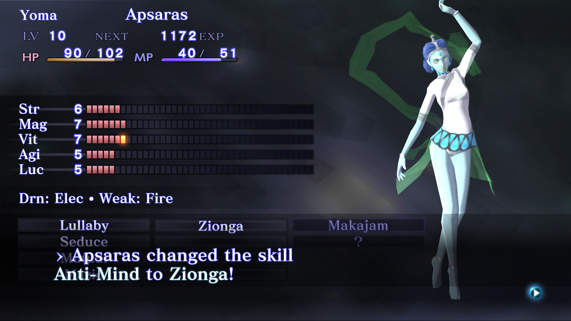 >think I'm a clever boy using dekaja stone on Matador>he just uses it againFirst try win, thanks to the power of demon women. That was less unfair than the mobs attacking me and killing me before I can react.honestly I just fused High Pixie into her because she's hot