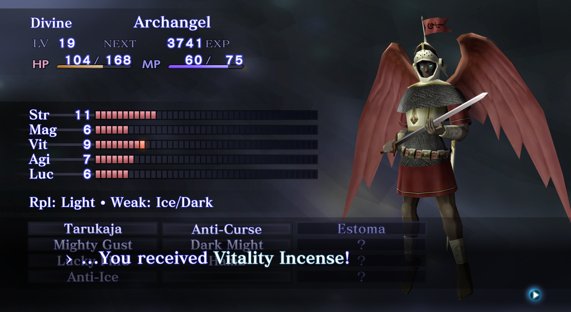 Now she was really hard.Killed my demons several times and got killed once.The armor also resists gun but her gun attack inflicts stun which seems like a 90% chance since it always stunned me.So if a demon or two die (She has 3 turns so very likely), you are almost basically stun locked.She was really difficult.I dont like that you cant fuse above your level like in any Megaten NG+ ever.So many wasted app points.Still being ages since I played 4 so its surprising to see how much different Apocalypse feels.Also Walter and Jonathan are so cool bros.Sad how they end up.