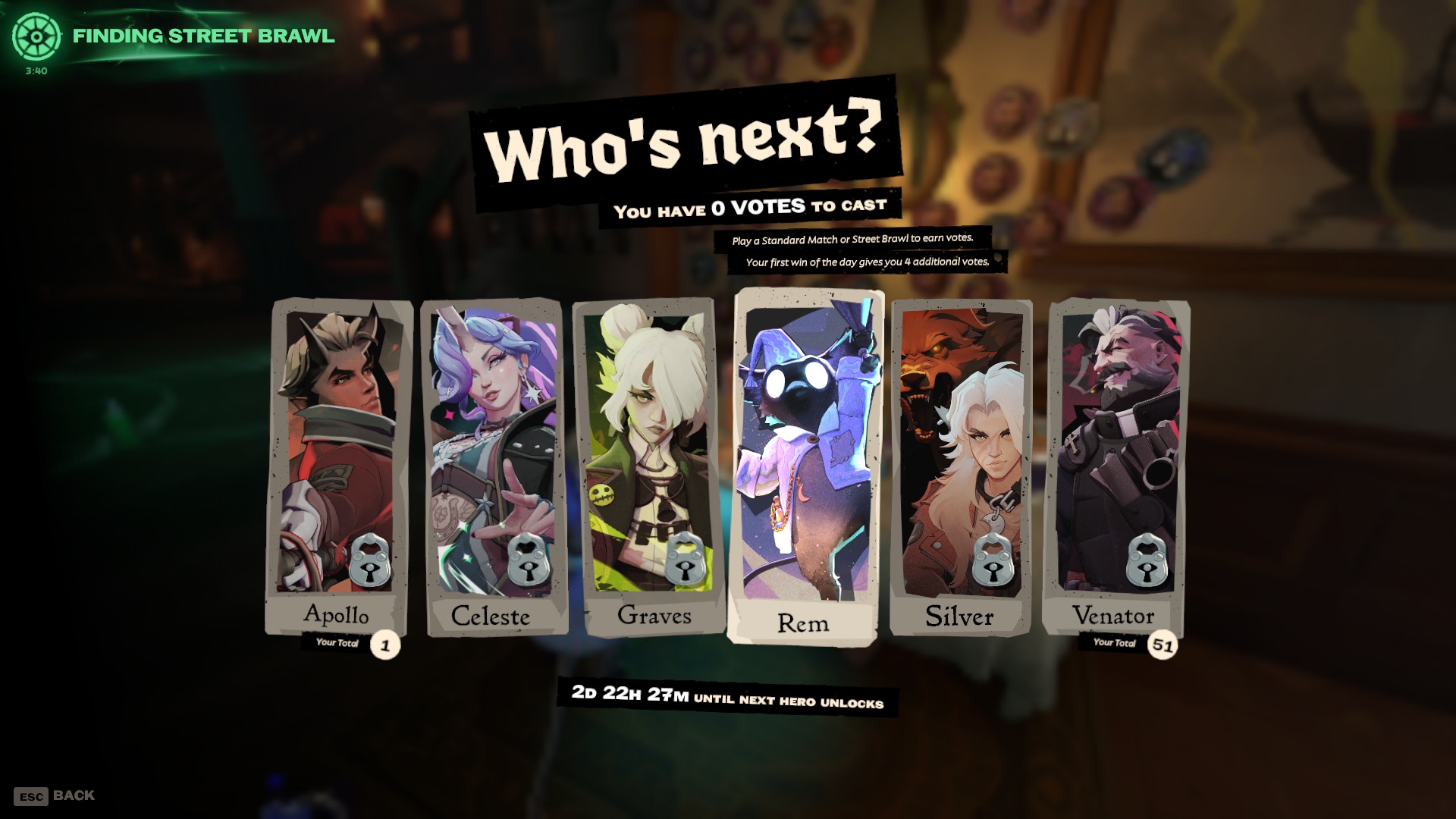 No worries Gravesbros. Once Steiner turns in his votes Rem will lose. He has been grinding Street Brawl since release.