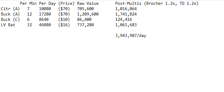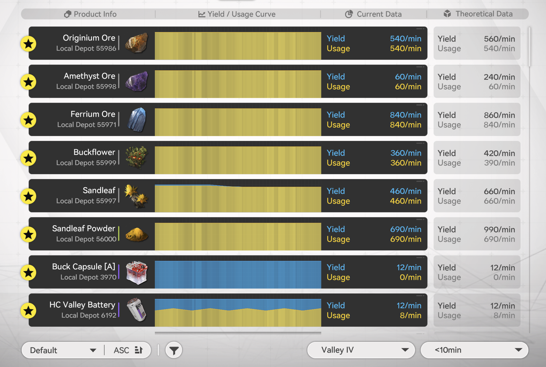 >>555296553I got my Region 11 upgrade, and yeah I agree.3 Buck A3 Blue Battery1 Purple BatteryJust about maxes out your Valley 4 output while staying below yield, at Region 11 you're already moving on to NotChina so may as well turn Valley 4 into a money printer while you're doing China stuff.Your Originium has some breathing room, and you have two empty bases assuming you're using autistic space saving blueprints.Not that there's much left to do with Valley 4 once you're at this point, but it's nice to know that I'm pretty much maxed out.