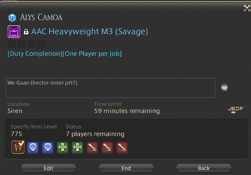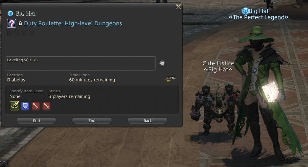 Registration Language: English (E) Duty registration complete.Duty pop: Duty RouletteYou have left the sanctuary.The World of Darkness has ended.Your level is no longer synced.You have entered a sanctuary.Nope.