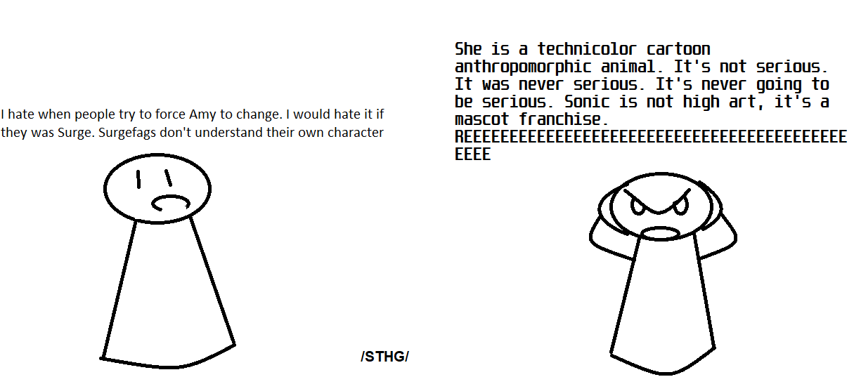 >>555318496That's not what Naoto Ohshima said. Sonamyfags like Slutskino just misrepresent it.What Ohshima-sama actually said was:>if Sonic did not have [the heart of a boy] (an integral character trait), he would marry AmyThis pretty much just means:>if Sonic was out of character, he'd be out of characterWhich is obvious.Sonamyfags make this out to be a bigger deal than it actually is.