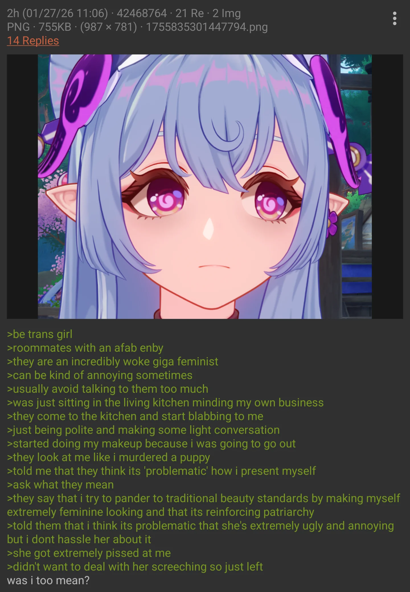 >honktroon is so used to terrible redundant shartji stories he can no longer appreciate true masterpieces