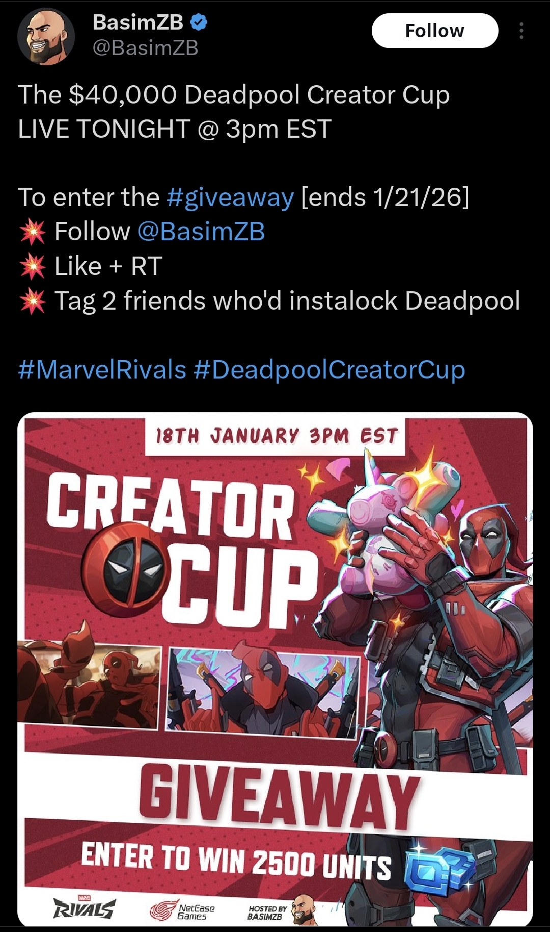 >>555355507>>555355475>They knew about the prize by the time they started playingBut not when they joined. So like I said. He was going to play anyway. The money just made him go into tryhard mode.I'm also reading that he wasn't the team leader. And when the team refused to go along with his plan, he opted to practice alone, instead of practice with his team. Which is the real reason he got kicked out.https://kotaku.com/kingsman-zazzastack-marvel-rivals-black-widow-deadpool-cup-2000662244>As the teammates argued against Kingsman265 suggestions, the streamer stopped practicing with them and went out to queue for ranked matches on his own. Shortly afterward, Kingsman265 reports that the tournament host messaged him to let him know he was out.>vs ever other source saying it was there from the start.Post 1. Every other source says there was a prize pool. But they don't say when the prize pool was initiated.If she were lying about the prizepool money being initiated after she was scouted for the tournament, then someone would have called her out on it. So post anyone calling her a liar or contradicting her claim.>>555356173Hey genius. That's an announcement the day off the tournament. They organize the tournament prior to that day. You can't be this dumb.