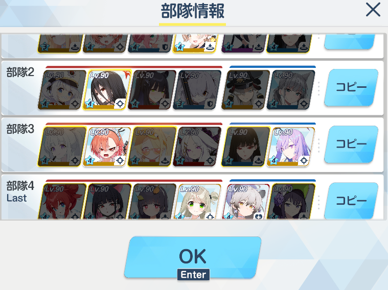 >>555357674>Don't have green momoi leveled.sMika 1st team, sMika (A) 2nd team, sHanako 3rd team thenI have sHanako, I just favor the waifus whenever I can use them and Midori is SR so she does pretty good there, even off-color