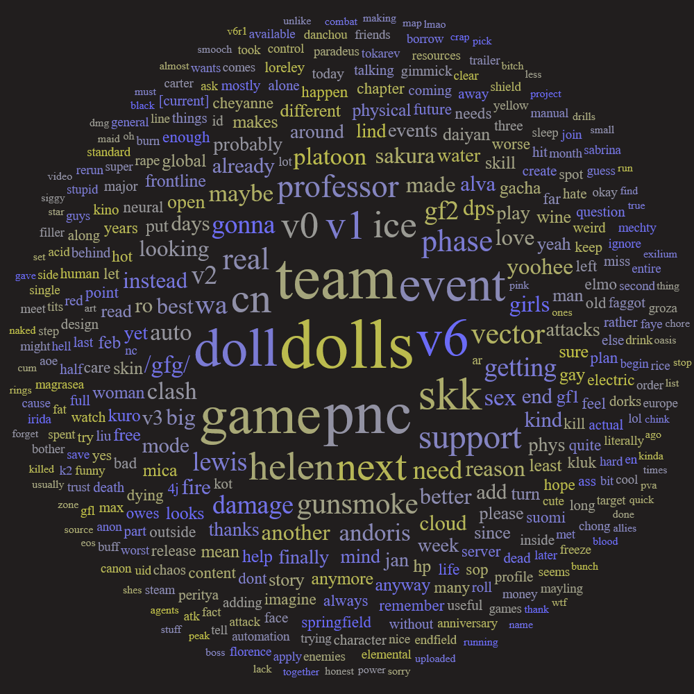 Previous: >>555193515This is a thread for MICA/Sunborn games. Including Girls' Frontline 1 and 2, Neural Cloud and Reverse Collapse: Code Name Bakery.Bind your account to a Sunborn ID instead of logging in from Facebook/Google.>STORY SUMMARYhttps://docs.google.com/document/d/1IalPz5JPc8-we4MiOsYhrMrOINifxW9d9Q6mTAqGoq8>TRANSLATED STORY & LORE MATERIALhttps://drive.google.com/drive/u/0/folders/14bAuWaGbagJwucmlit3EkXFqMRV9NHZO>GUIDESGF1 Resources: https://rentry.org/o9ibbk2kGF2 Resources: https://rentry.co/5x2kxhs4PNC Resources: https://rentry.org/dd5q8b25RC: https://store.steampowered.com/app/1127700/Reverse_Collapse_Code_Name_Bakery/>NEWS/EVENTS (GF1 EN)[Current] Jan. 13 - Feb. 2 | Special Event: Roche Limit[Current] Jan. 13 - Feb. 9 | New Re-Supply Gacha: Crisis Dispatch Center[Upcoming] TBA | Event rerun: The Summer Garden of Farking Paths >NEWS/EVENTS (GF2 EN)[Current] Jan. 8 - Jan. 28 | Targeted Procurement: Lewis[Current] Jan. 8 - Jan. 28 | Character Event: Lewis - Project Neural Convergence[Upcoming] Jan. 29 - Feb. 18 | Targeted Procurement: Sakura[Upcoming] Jan. 29 - Feb. 18 | Character Event: Sakura - Advanced! Miss Courier!>NEWS/EVENTS (PNC EN)[Current] Mar. 25 - ? | Nothing>Old Events & OP Templatehttps://rentry.org/gfgroot>DO NOT REDEEMGFL2ANNI (D) (H)URAB1GD0RC (D) (H)Reminder to bully seaniggers, doroniggers, discord trannies, bugmen, /v/ermins, dramaniggers, tourists, yuritroons, retards & degenerates, and to lurk 2 months before posting