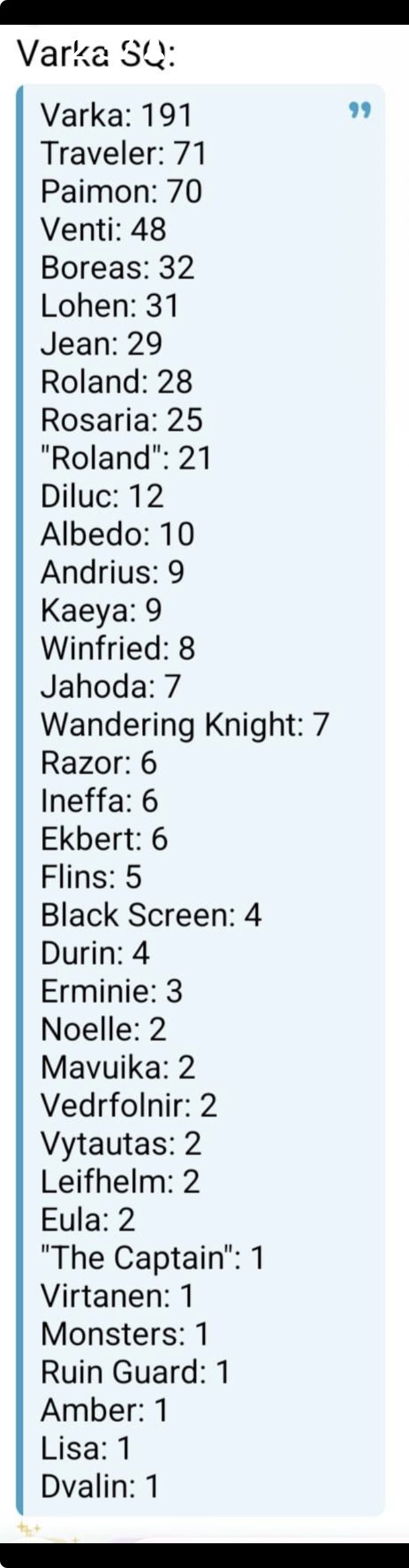 There's a lack of 4 stars if you ask me.Wouldn't be hard to just make up a few knights that went with Varka and make them 4 stars for gimmicks that have little characters as is, like BoL or Hexerei.
