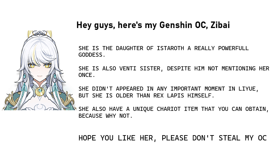 >>555381140It's funny when there is a schizo instantly seething the moment Zibai is mentioned
