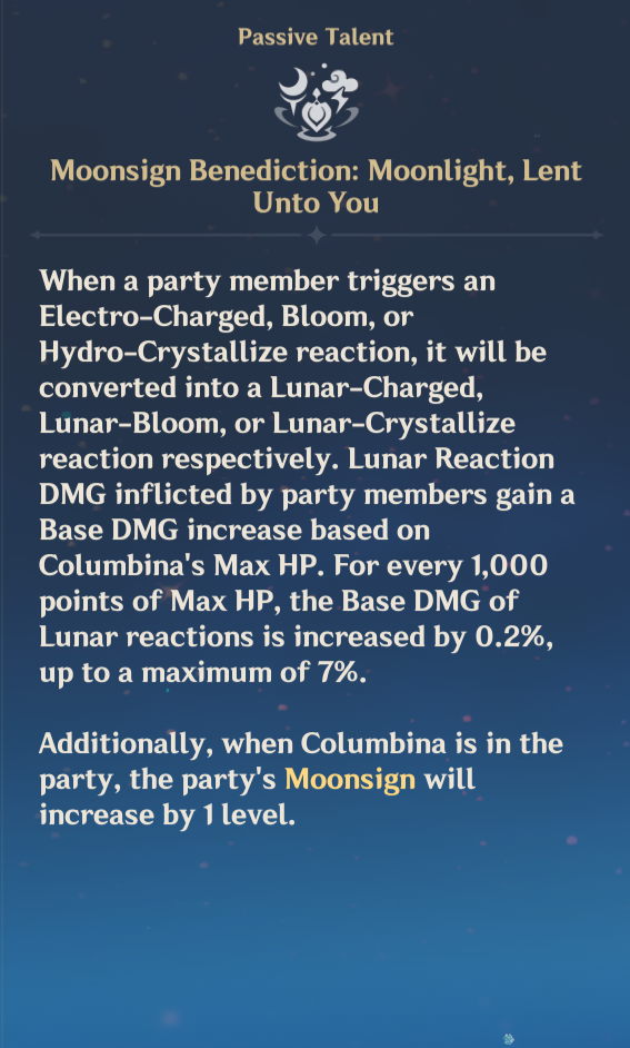 Previous: >>555352404 >Character Trailer - "Columbina: To Where She Flies"https://youtu.be/WsYsNoNjbaw (EN)https://youtu.be/9AVYsSZ1huA (JP)>Character Teaser - "Columbina: Where She Dwells"https://youtu.be/ME4OGvcPBUs (EN)https://youtu.be/7zLvIrPBGF4 (JP)>Version "Luna IV" "A Traveler on a Winter's Night" Trailerhttps://youtu.be/_yuHIzPJGHA (EN)https://youtu.be/wTL5hRtmWjM (JP)>Outfit Teaser: Teyvat Style – Nocturne of Serenityhttps://youtu.be/Q5I3xKJfIO4 (EN)https://youtu.be/TGsTYPeOtxw (JP)>Current character banner: Columbina, Ineffa, Ifa, Sethos, Fischl>Current weapon banner: Nocturne's Curtain Call (Catalyst), Fractured Halo (Polearm)https://www.hoyolab.com/article/43195155>Daily check-in rewards (permanent)https://webstatic-sea.mihoyo.com/ys/event/signin-sea/index.html?act_id=e202102251931481&lang=en-us>Redeemable Codes with Primogems (all regions): https://genshin.mihoyo.com/en/giftGENSHINGIFT8X73KH58KDHNMoonInvitationLunaIV (NEW)P3GXX56W3VG9>Useful Links (Wiki, Simulators, Maps, Character Builds, /gig/ friendlist, Third-Party Tools, etc.)https://rentry.org/giglinks/gig/ OP pastebin (use this if making new thread):https://pastebin.com/ca0zseQ9