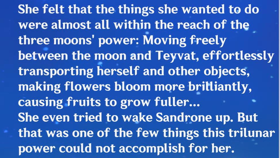 >>555400498Sandy isn't a simple tin metal canShe was build by Alain to defy Teyvat fate system, so even moon power are beyond her reach