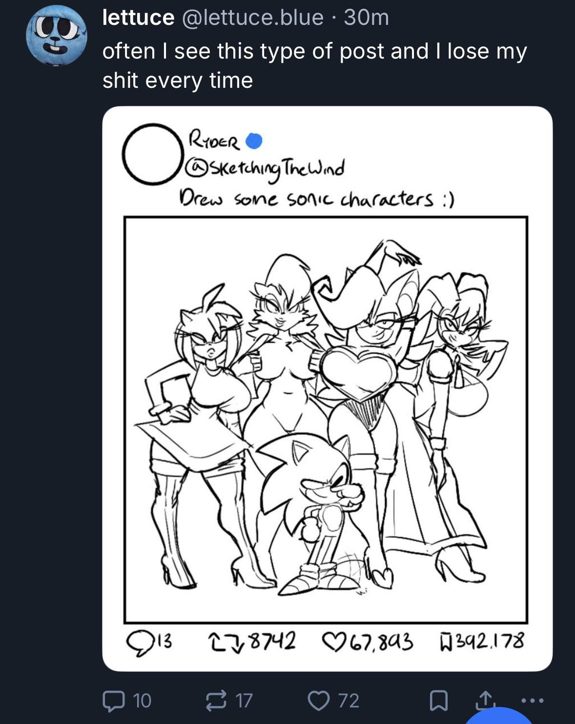 >>555394161I didn't want to say that but I notice that in general. A lot of these specific readings of the characters (especially the "found family" ones) aren't actually in the Sonic games and at most came up in Archie specifically